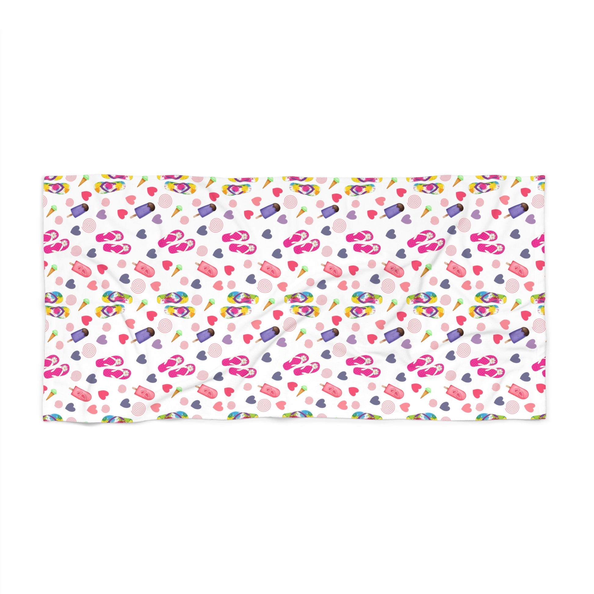 Beach Towel - Fun Flip Flops and Ice Cream Summer Design