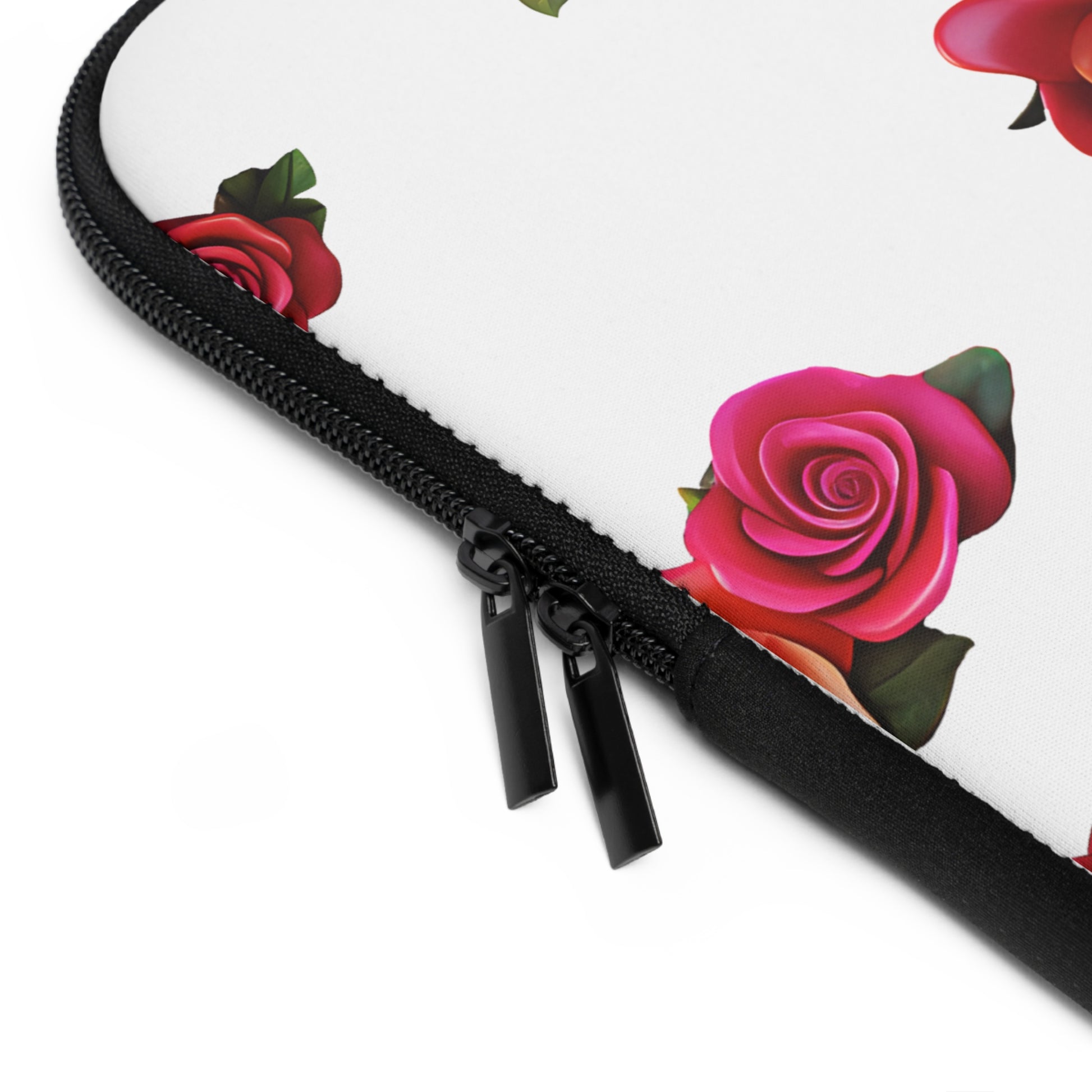 This laptop sleeve features a unique rose background with a day of the dead original pattern, giving off a cool and edgy vibe. Perfect for those who love bold and artistic designs. Ideal for Halloween, Dia de los Muertos, or any day when you want to stand out.