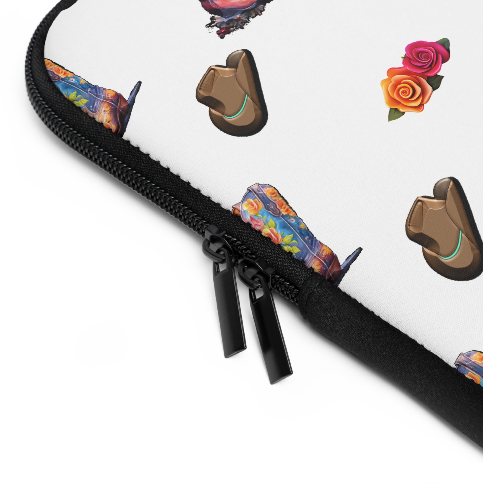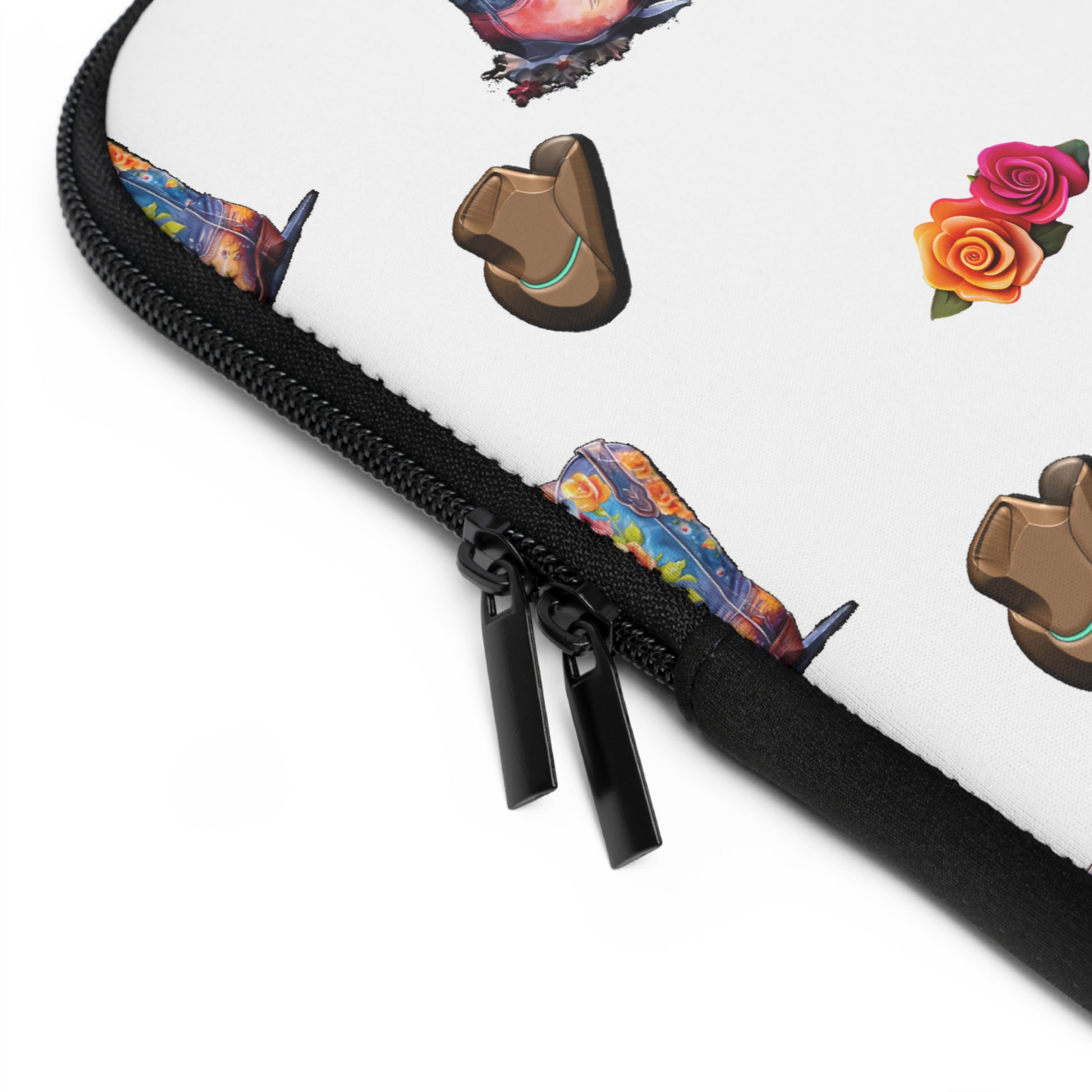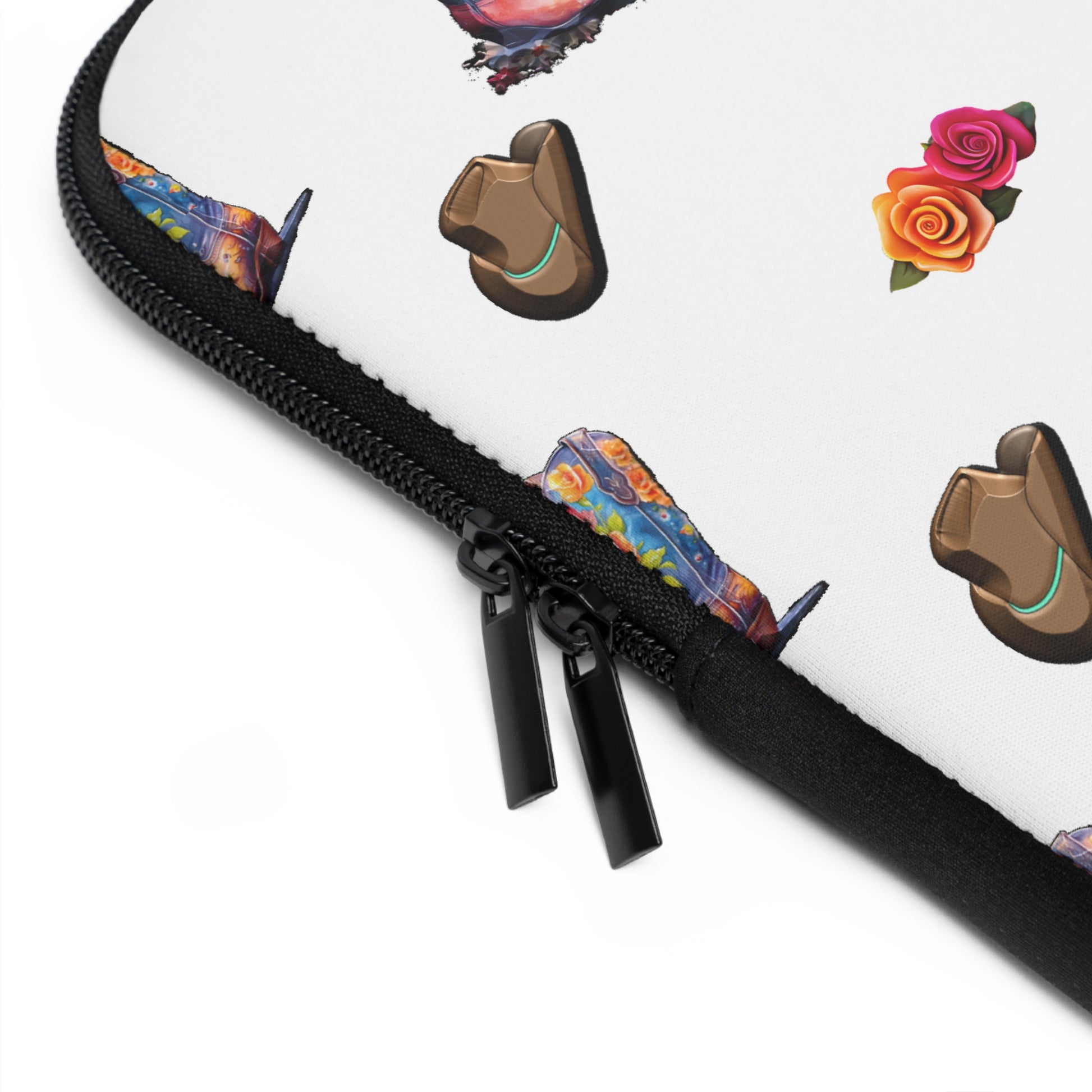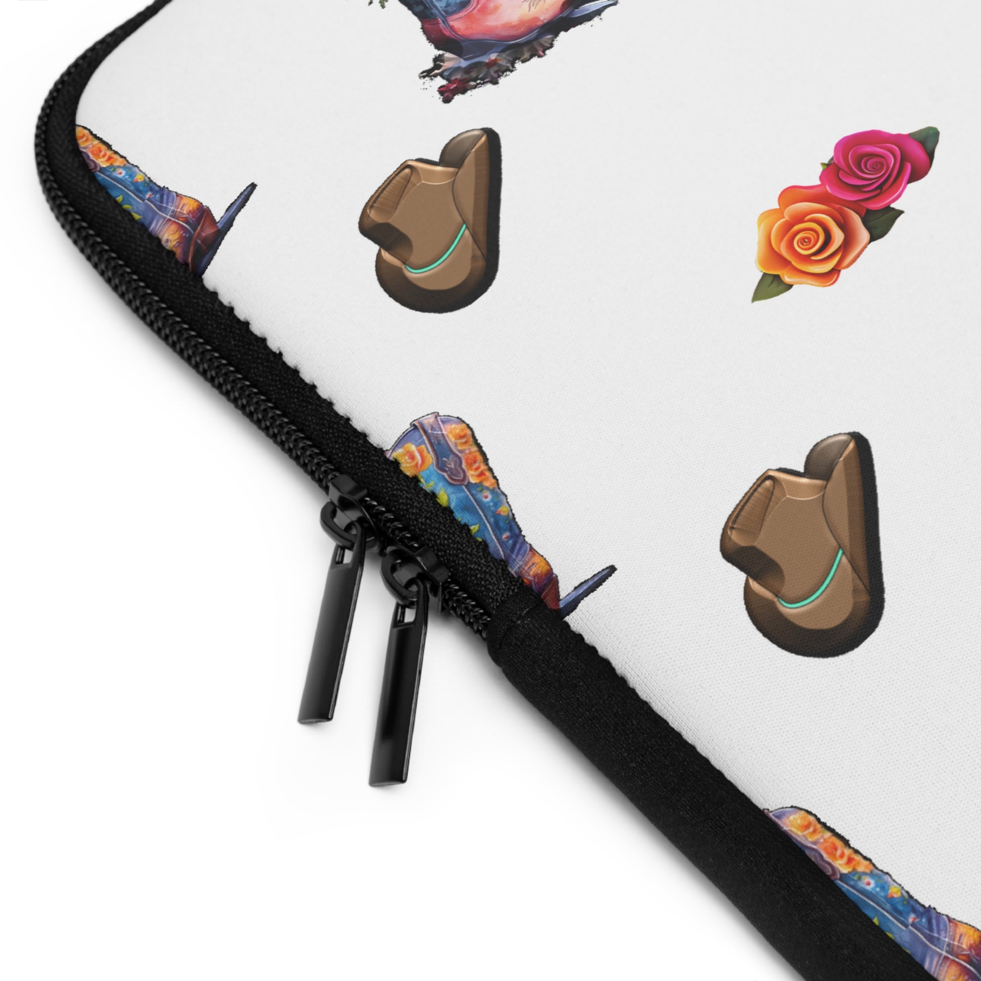 This Laptop Sleeve features a design of western boots and flowers, giving off a rustic and country vibe. Perfect for those who love cowboy boots and boho aesthetics. Ideal for students, professionals, or anyone who wants to protect their laptop in style. Great for back-to-school, birthdays, or as a thoughtful gift for country music lovers.