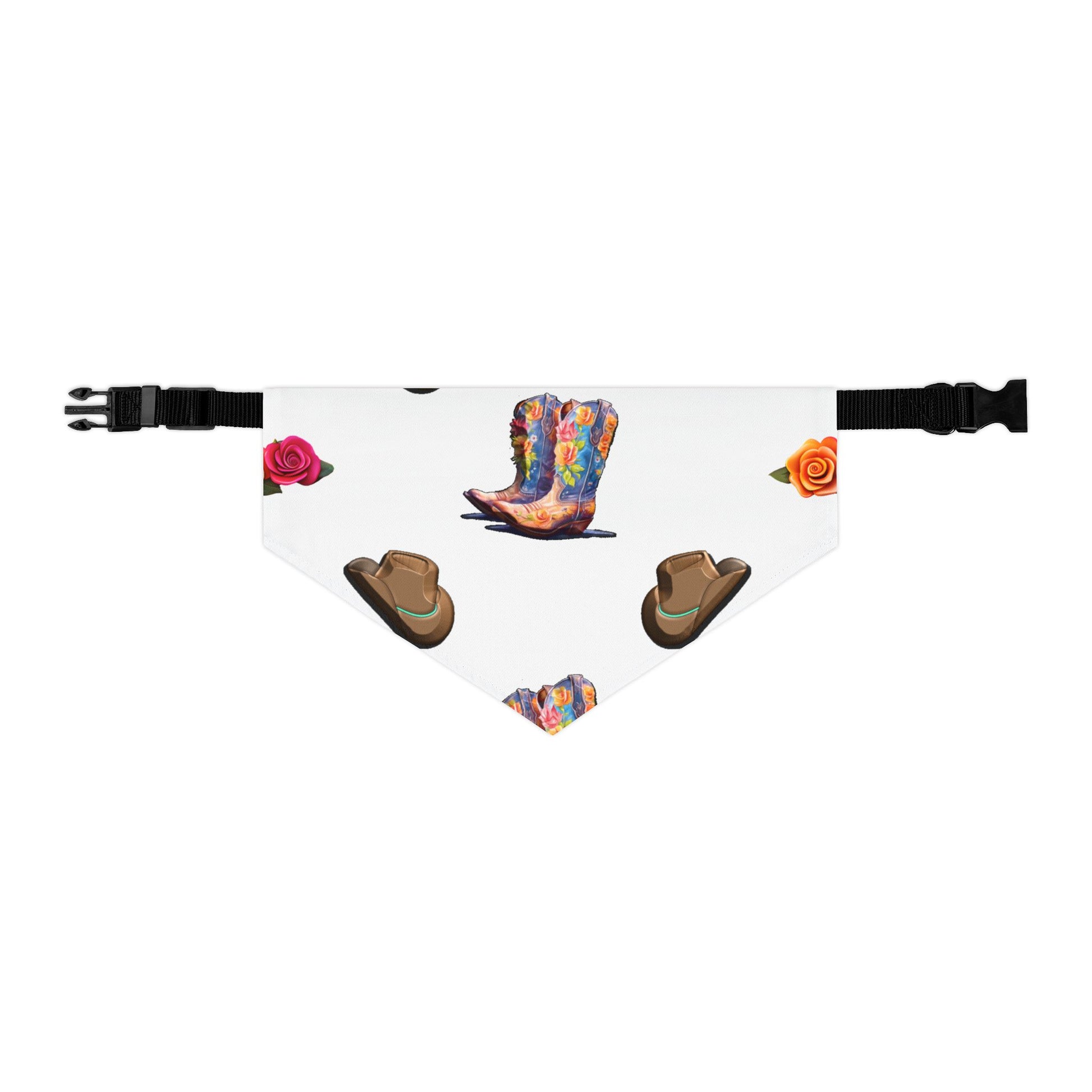 The pet bandana collar puts a fun spin on standard animal accessories. It is made of polyester duck fabric and is sublimation printable on one side. The bandana collar is available in four sizes to fit any pet. The construction and printing is durable enough for machine washing. The collar fastening helps to keep the bandana fitting correctly, even during play.