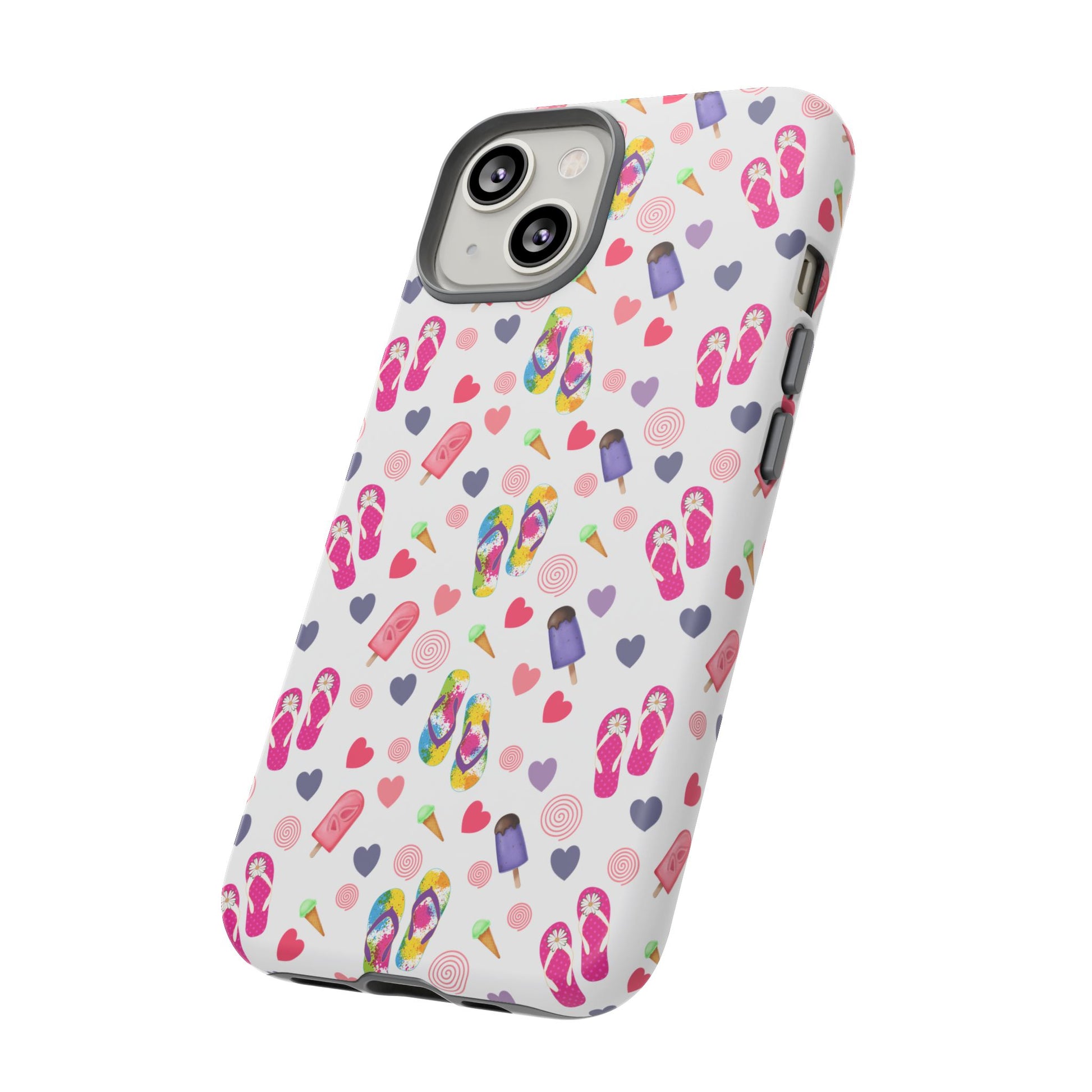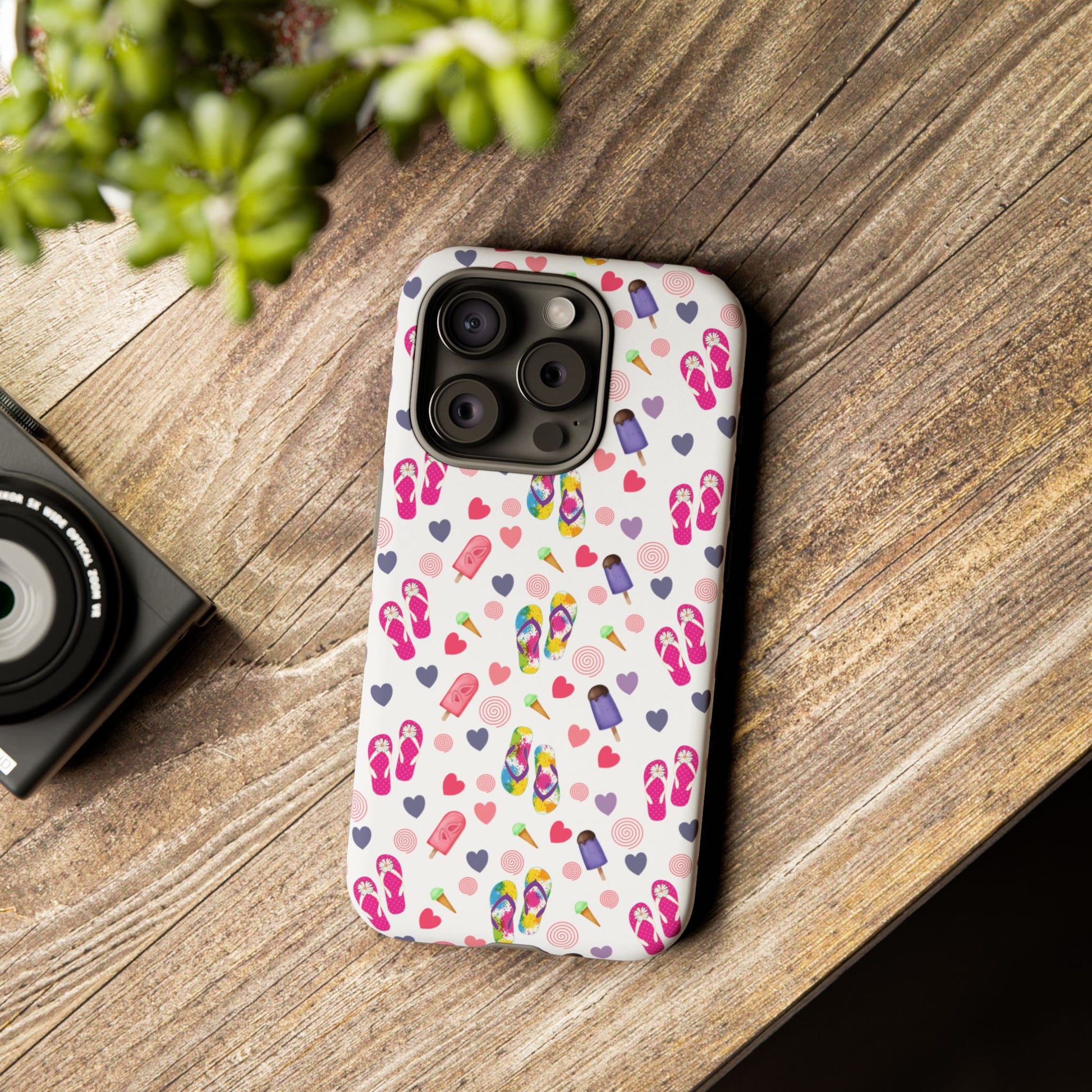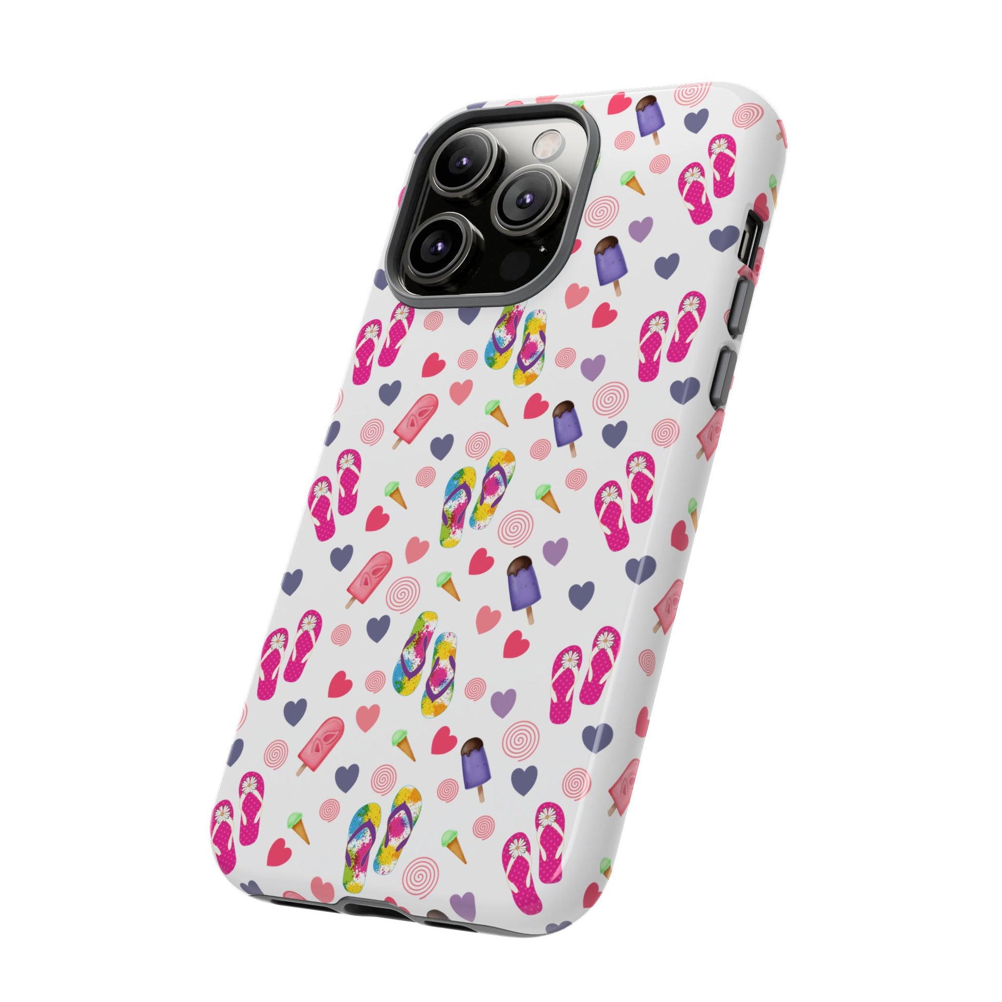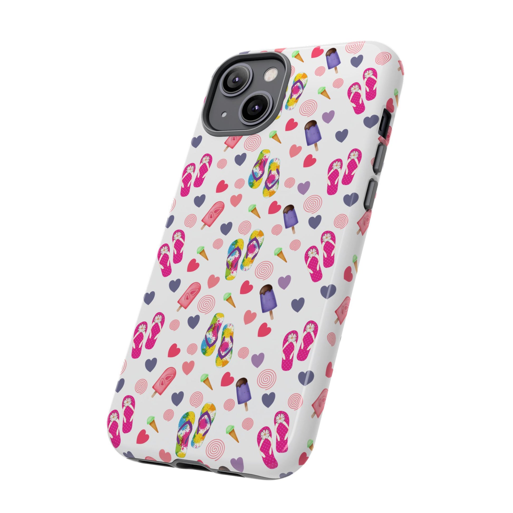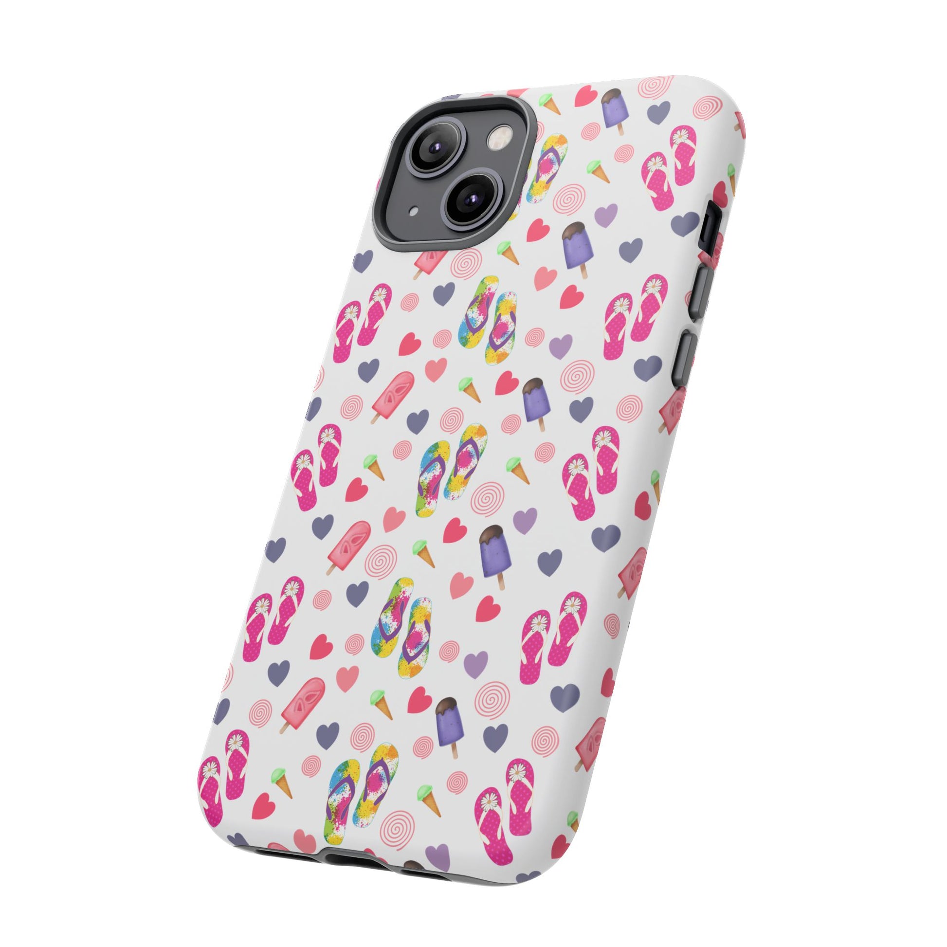 Stay connected to summer vibes with this flip flop design phone case. Perfect for those who love summer and want to add a touch of whimsy to their phone accessories. Ideal for adults who want durable and impact-resistant protection for their phones. Relevant for summer holidays, beach trips, and casual outings.