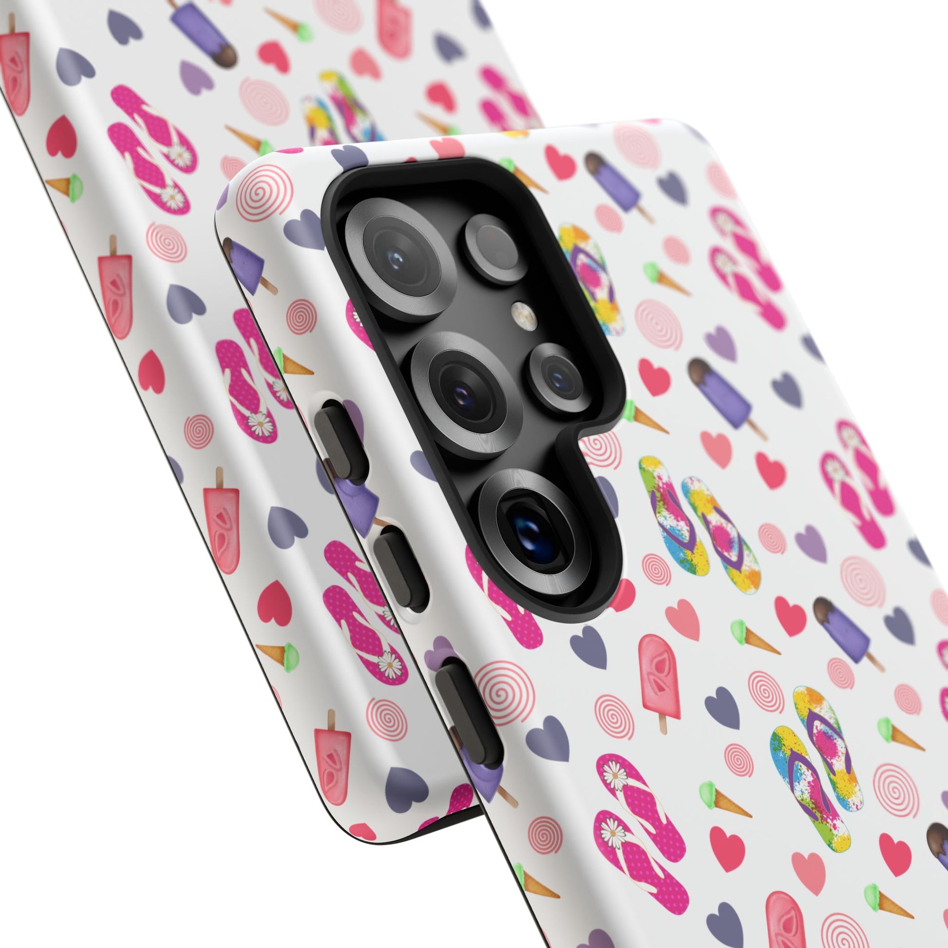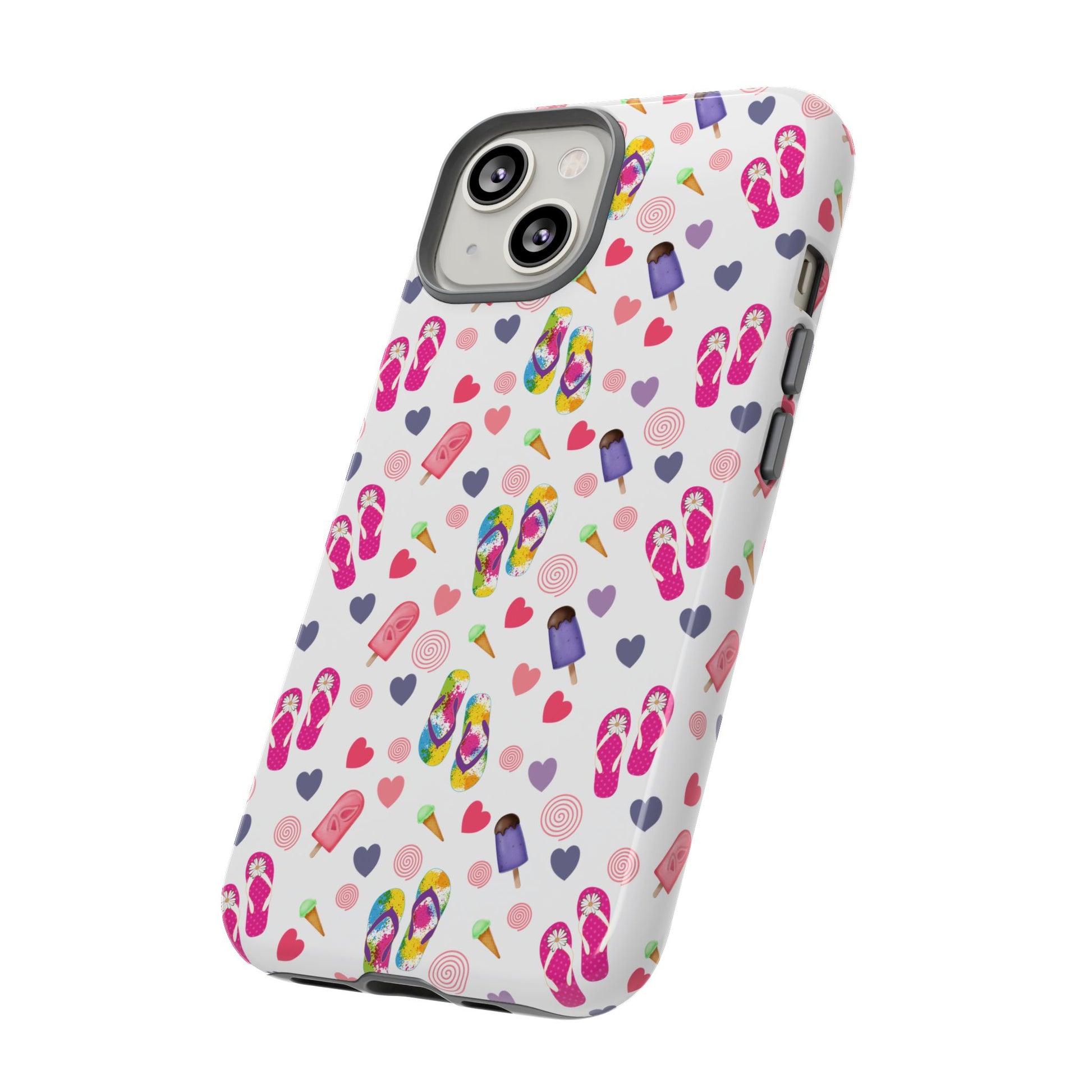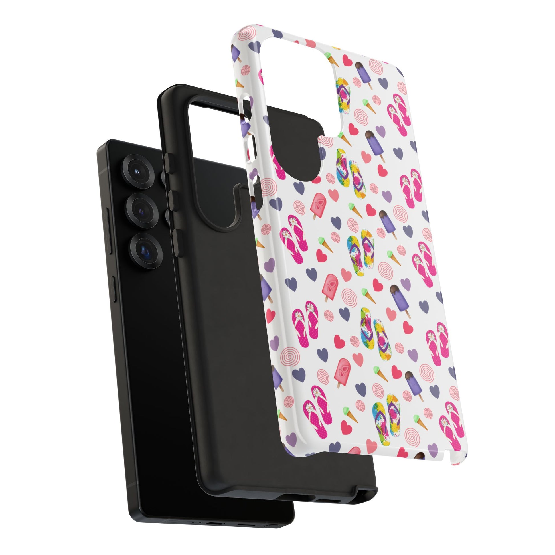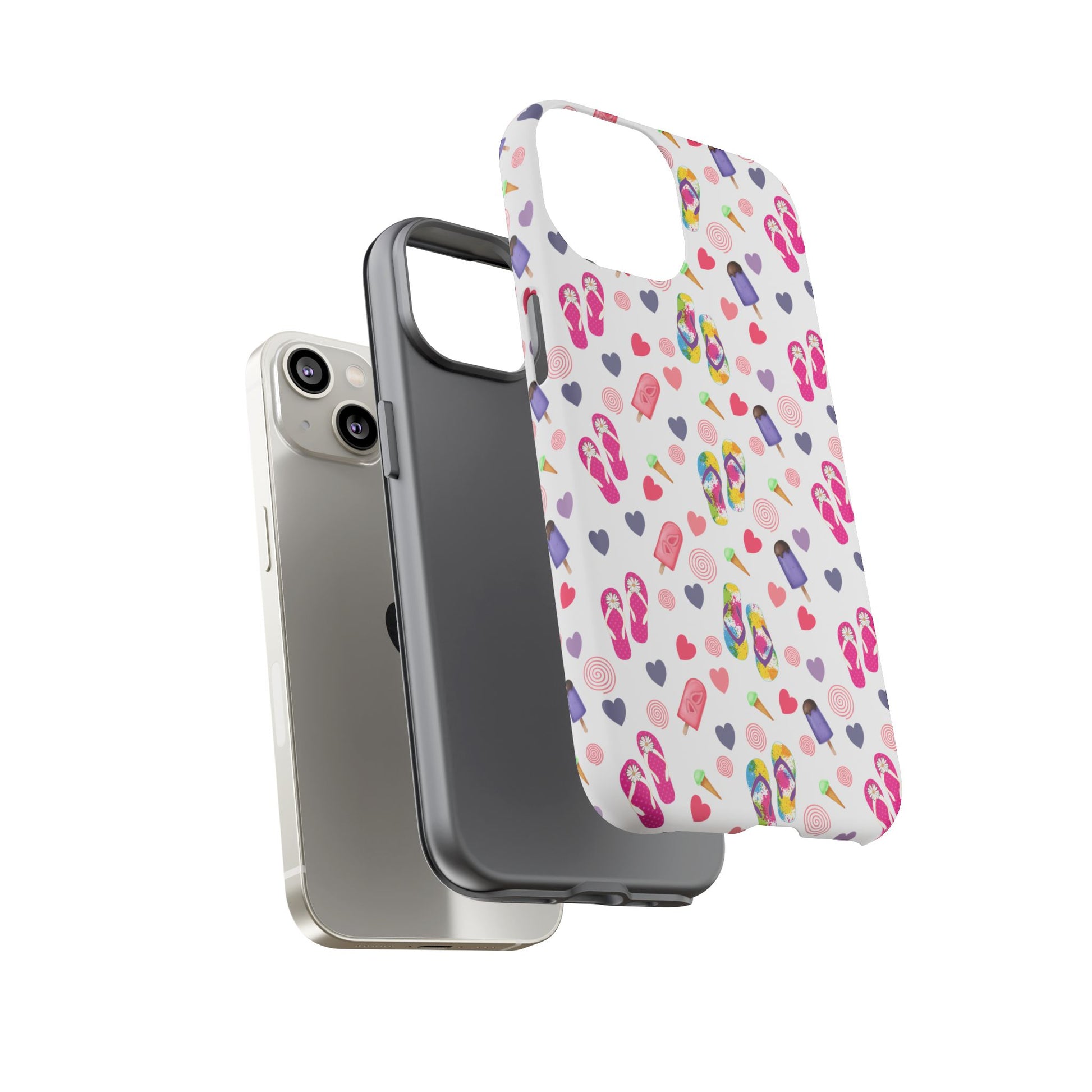 Stay connected to summer vibes with this flip flop design phone case. Perfect for those who love summer and want to add a touch of whimsy to their phone accessories. Ideal for adults who want durable and impact-resistant protection for their phones. Relevant for summer holidays, beach trips, and casual outings.