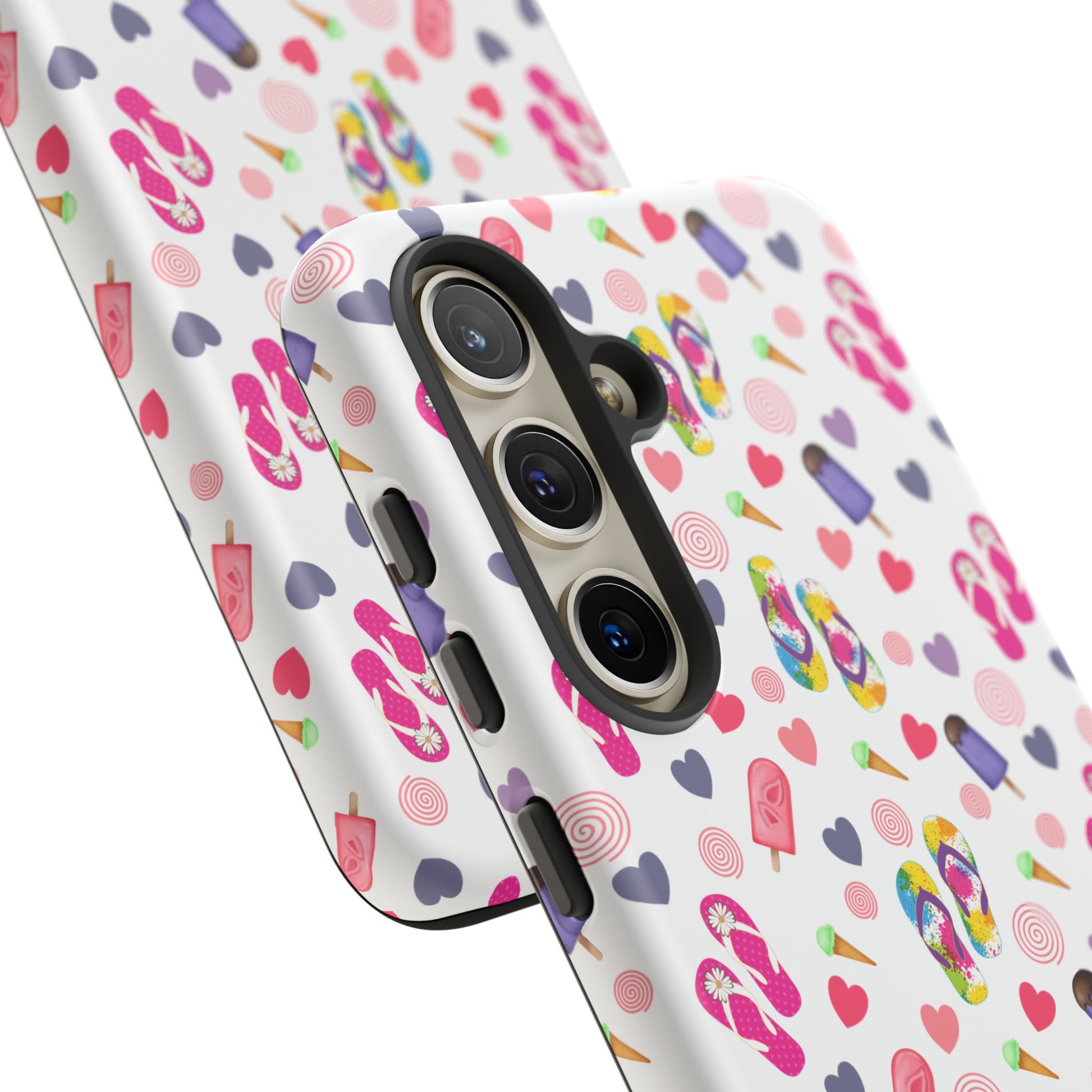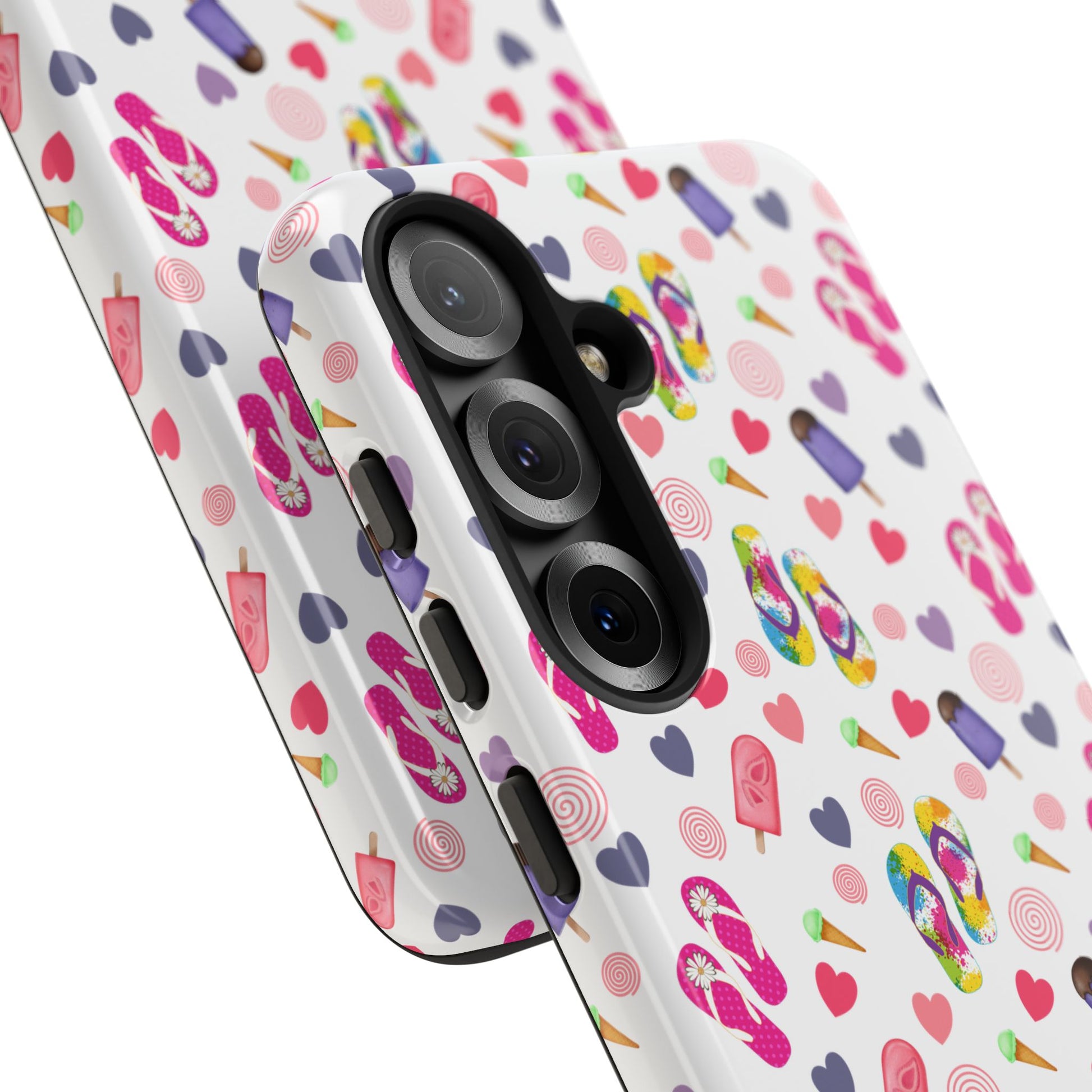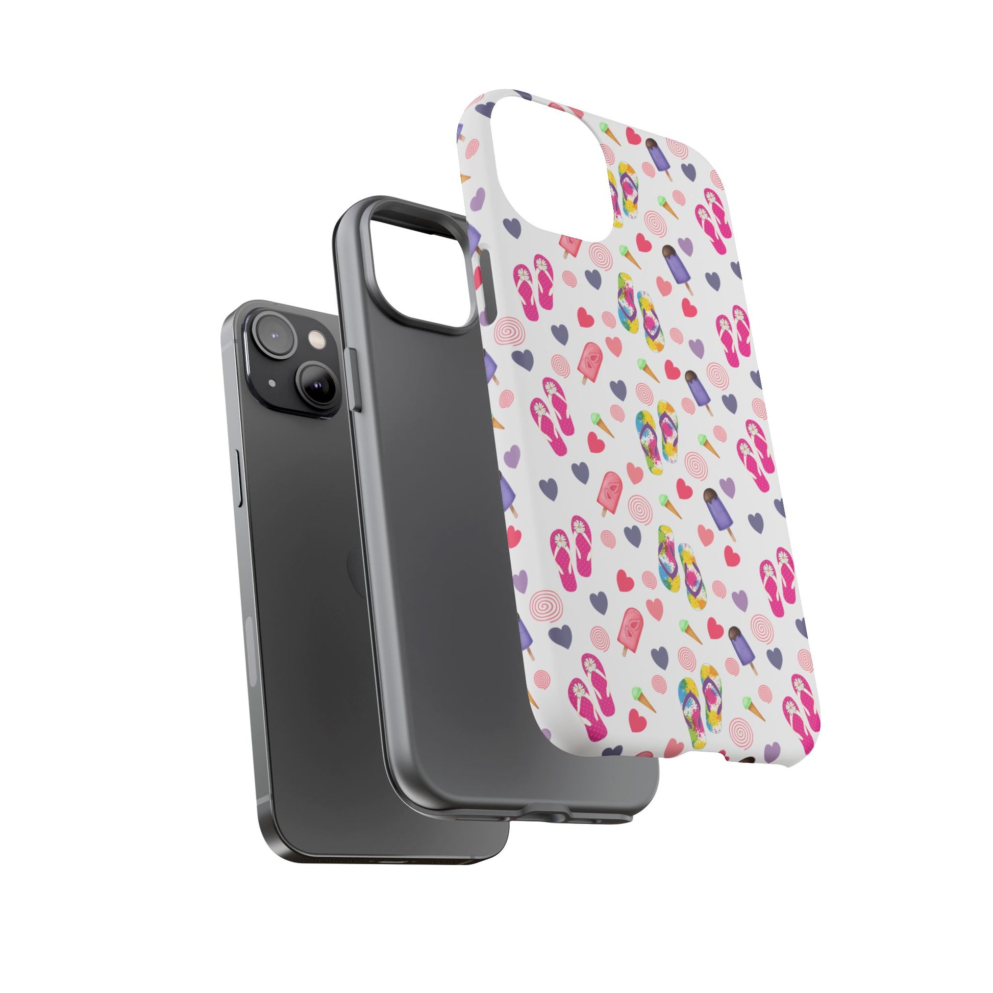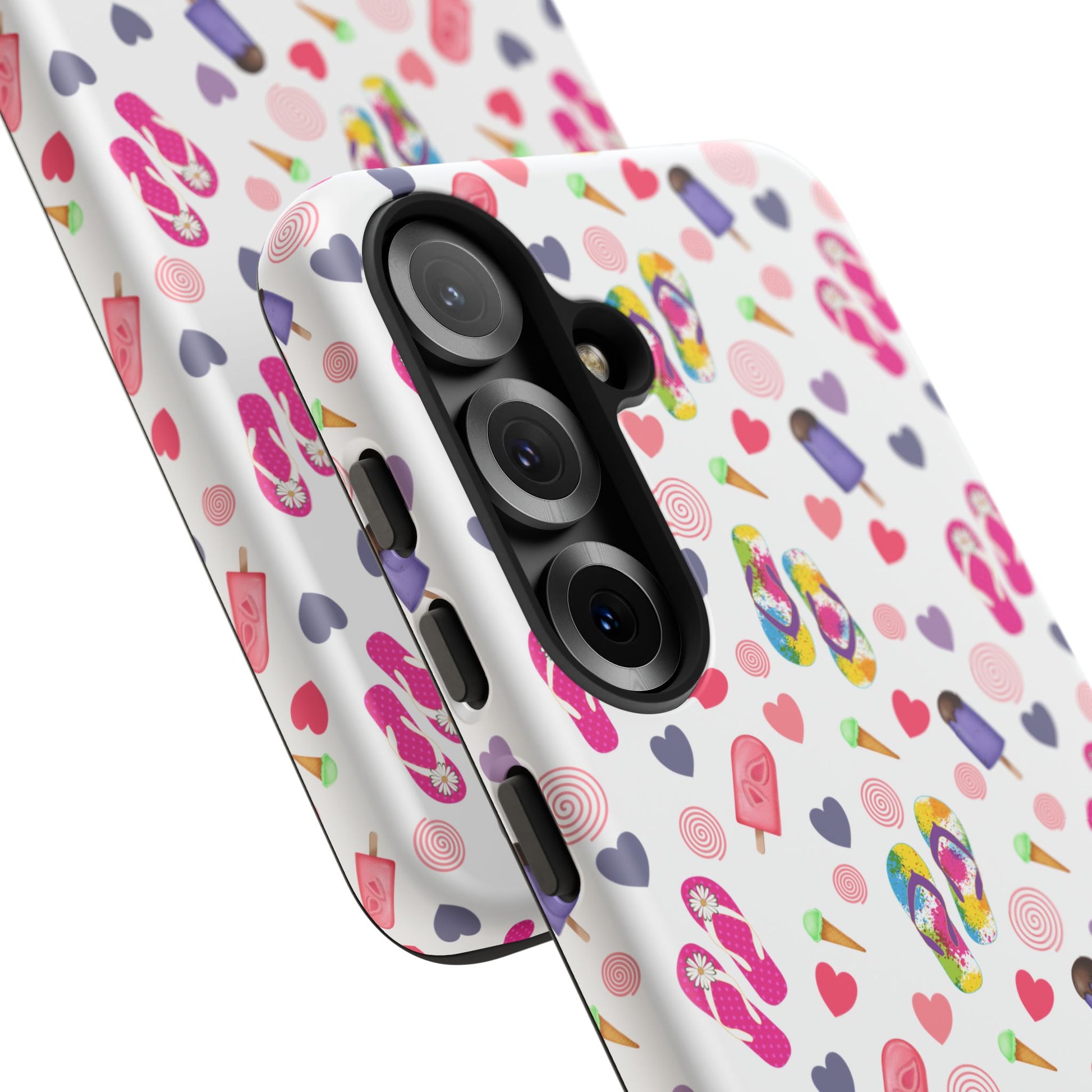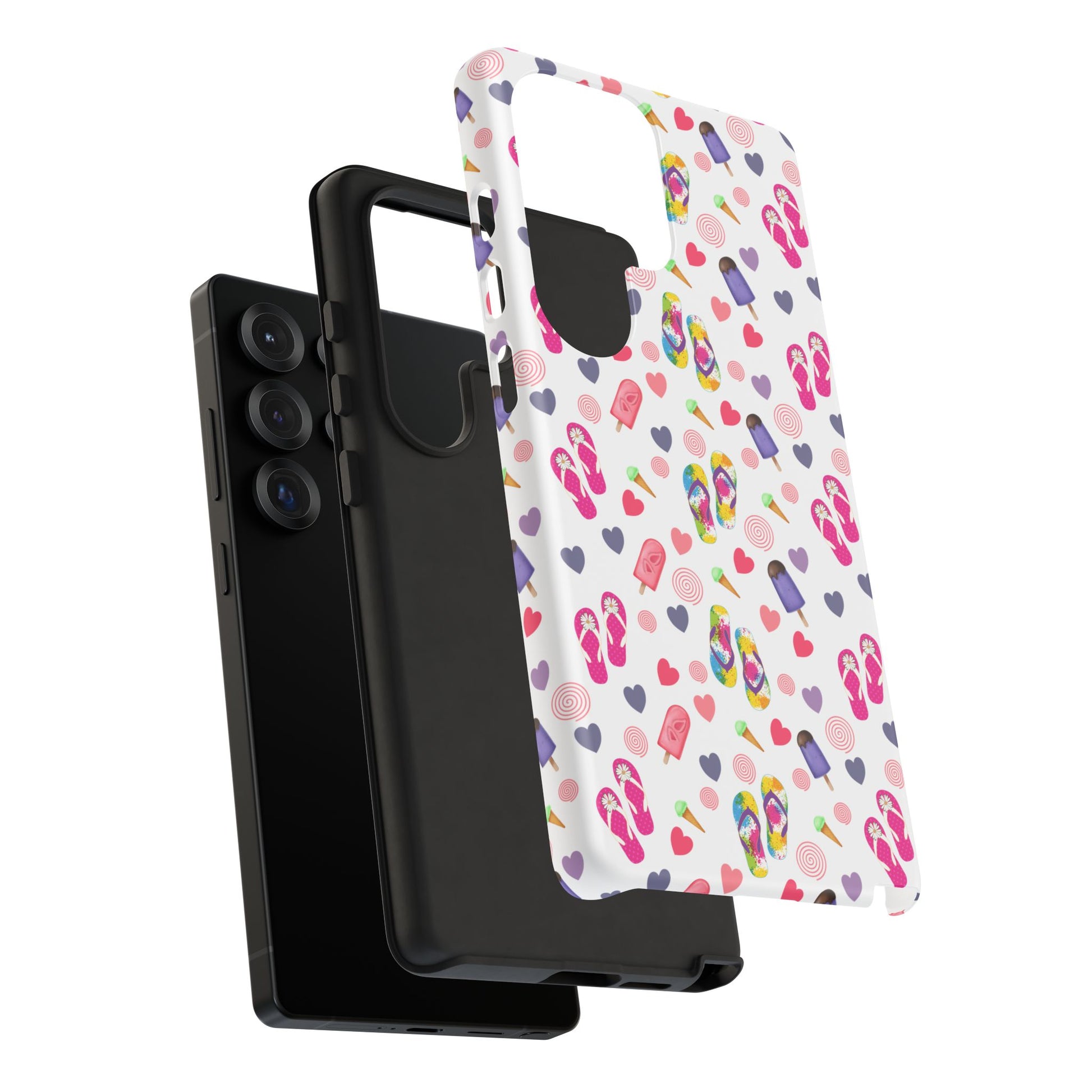 Stay connected to summer vibes with this flip flop design phone case. Perfect for those who love summer and want to add a touch of whimsy to their phone accessories. Ideal for adults who want durable and impact-resistant protection for their phones. Relevant for summer holidays, beach trips, and casual outings.