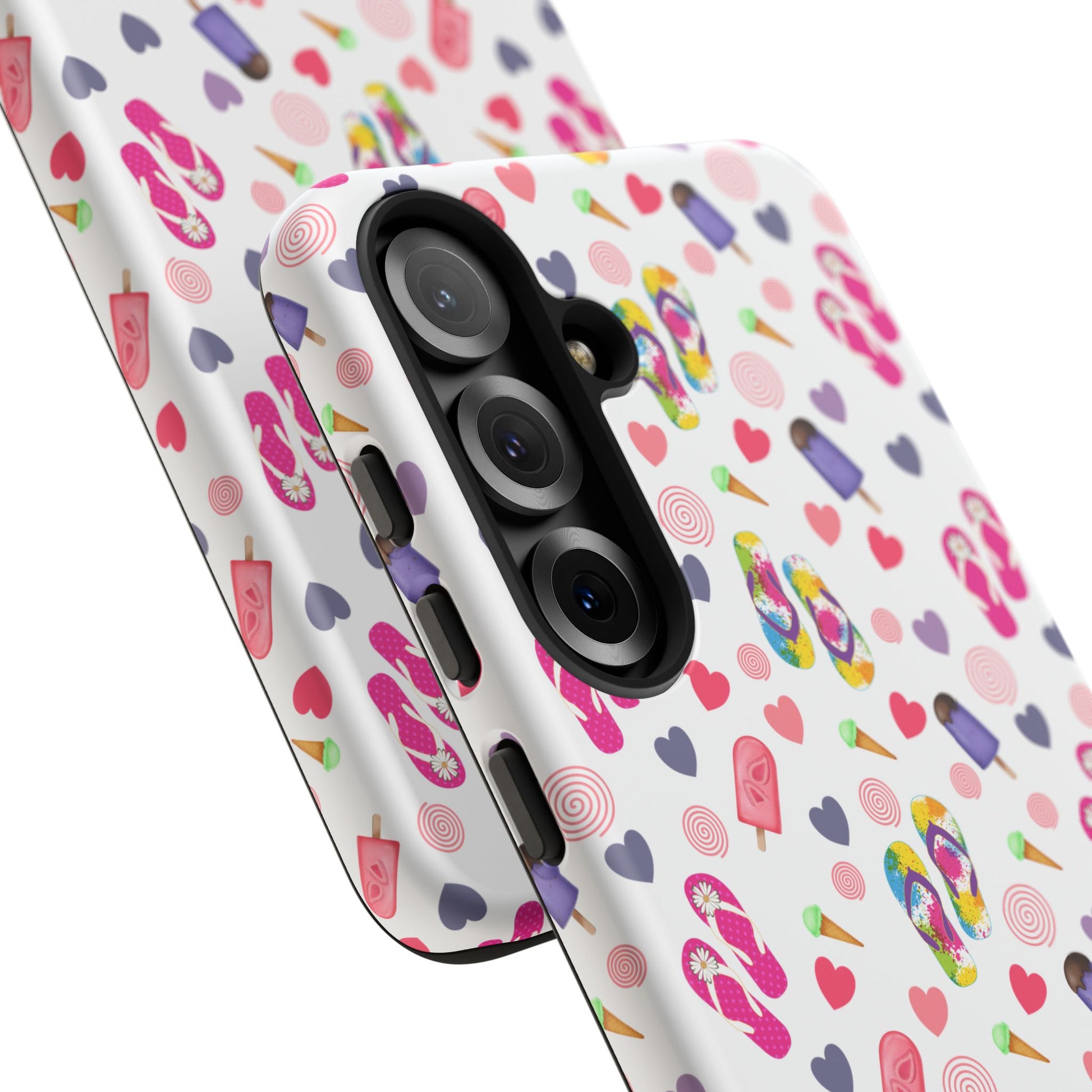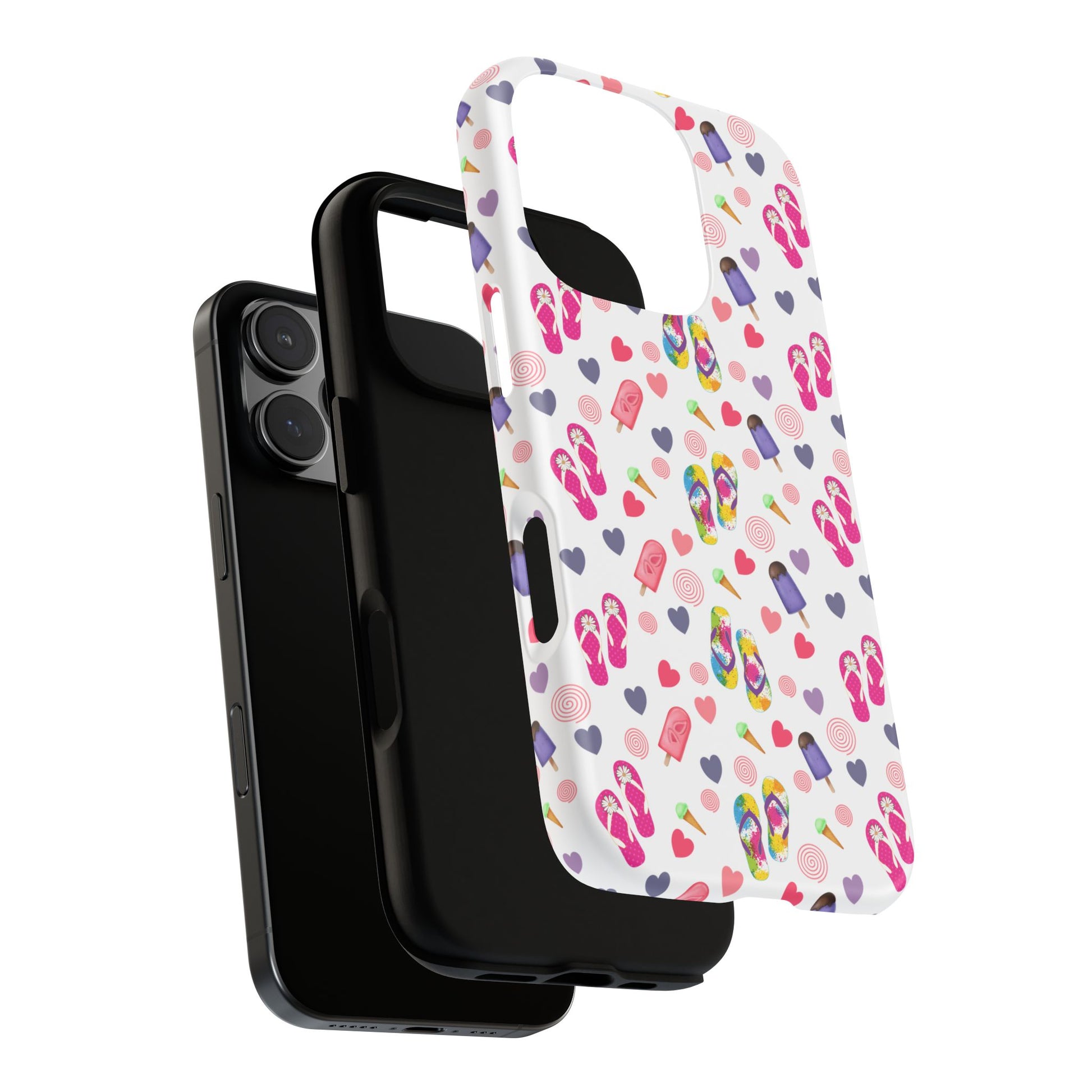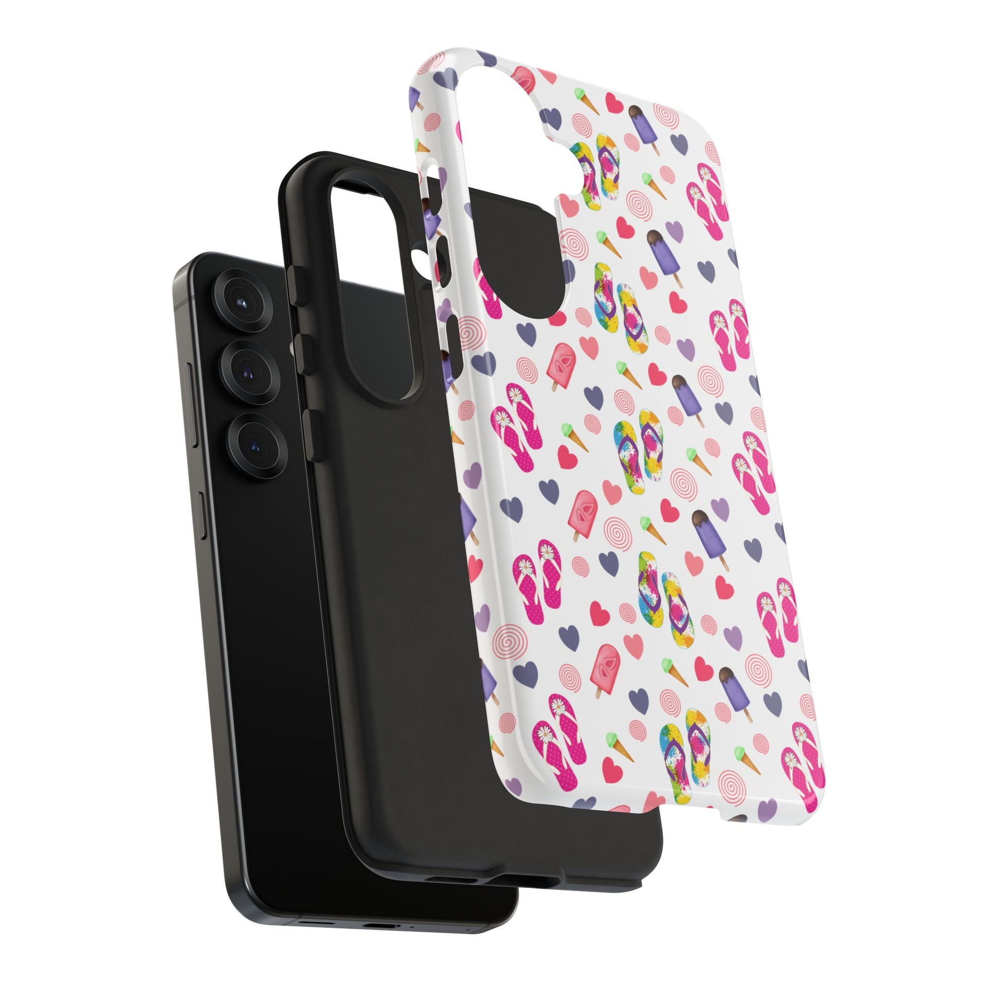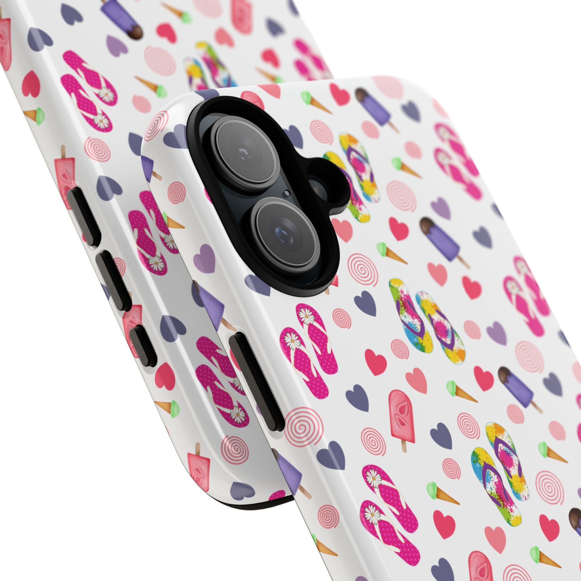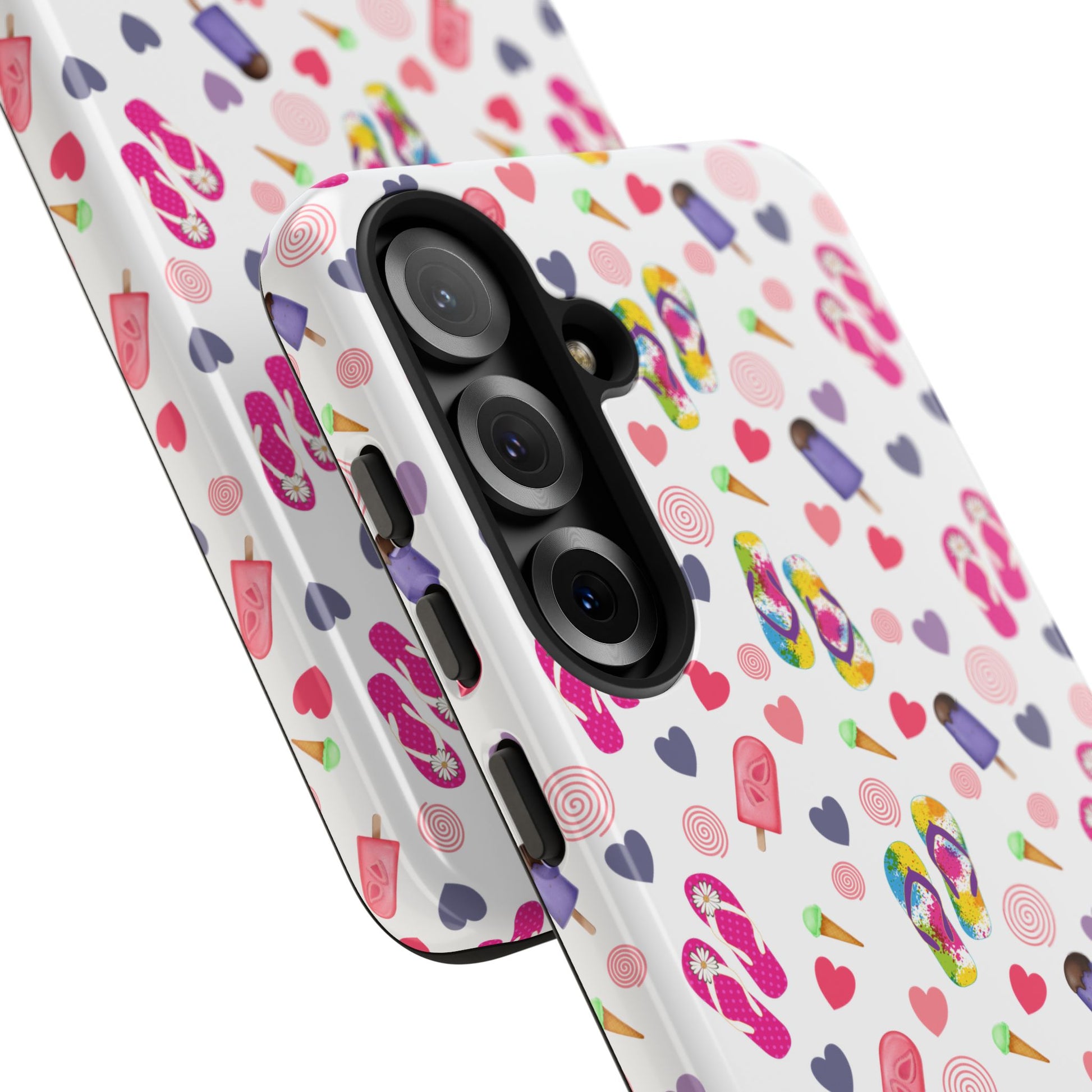 Stay connected to summer vibes with this flip flop design phone case. Perfect for those who love summer and want to add a touch of whimsy to their phone accessories. Ideal for adults who want durable and impact-resistant protection for their phones. Relevant for summer holidays, beach trips, and casual outings.