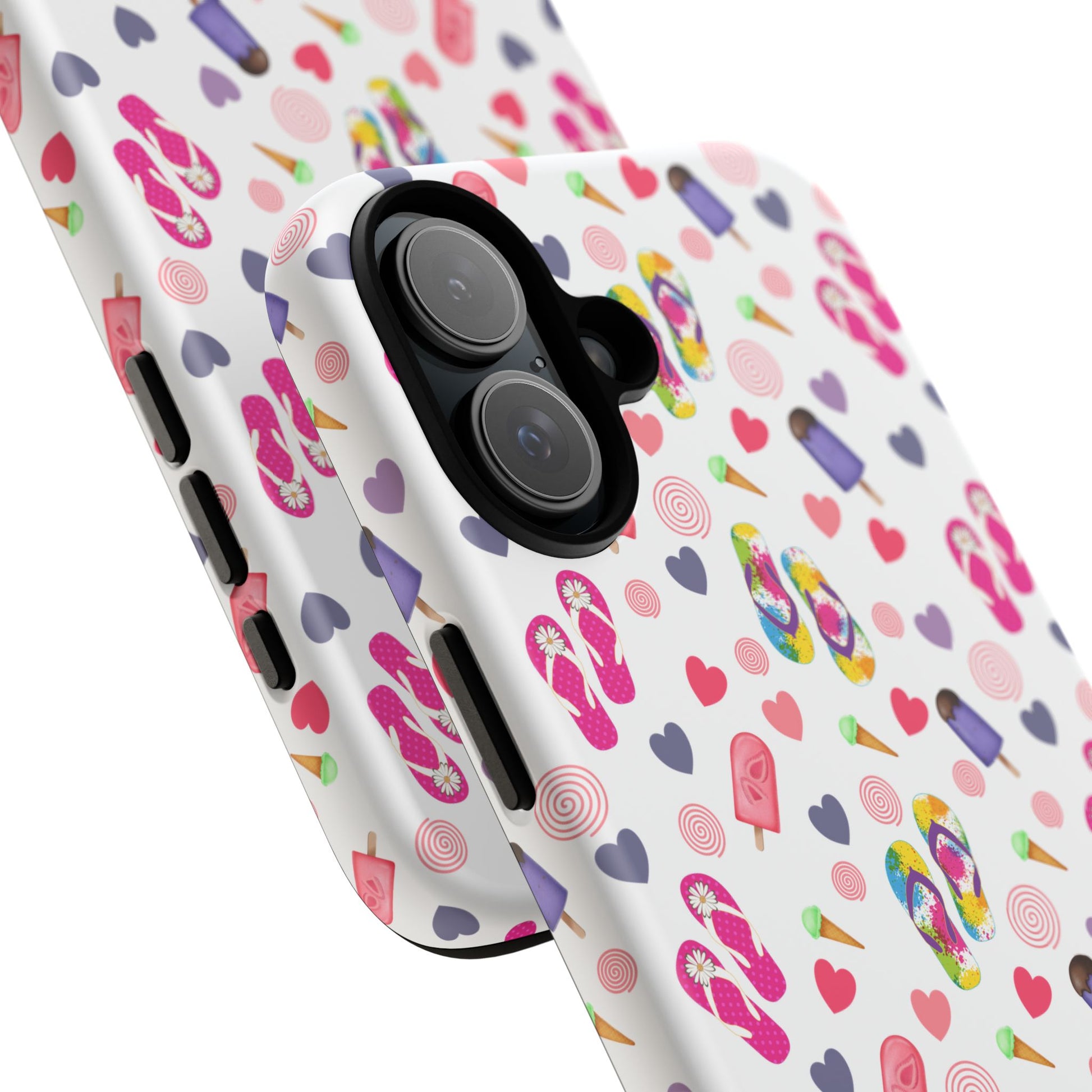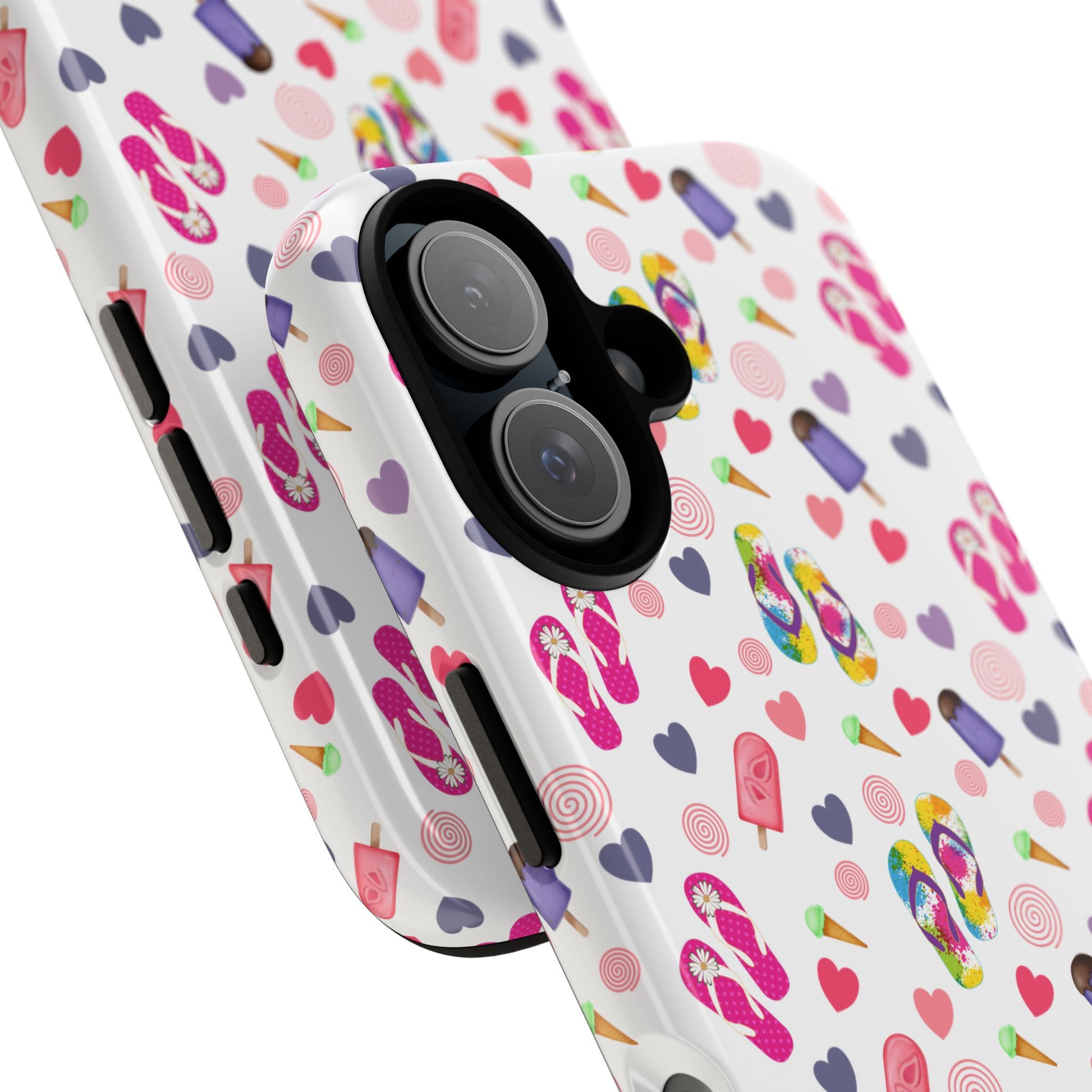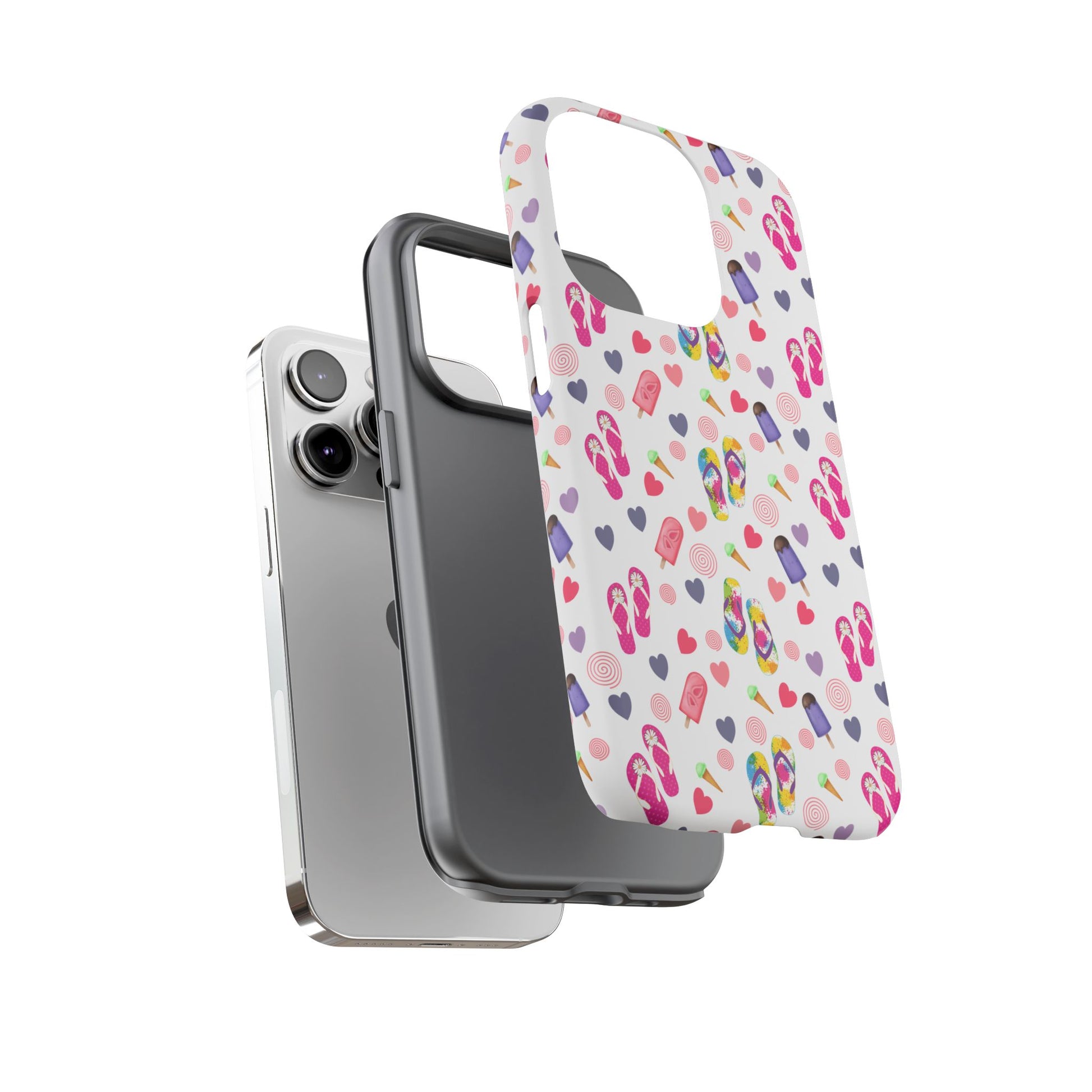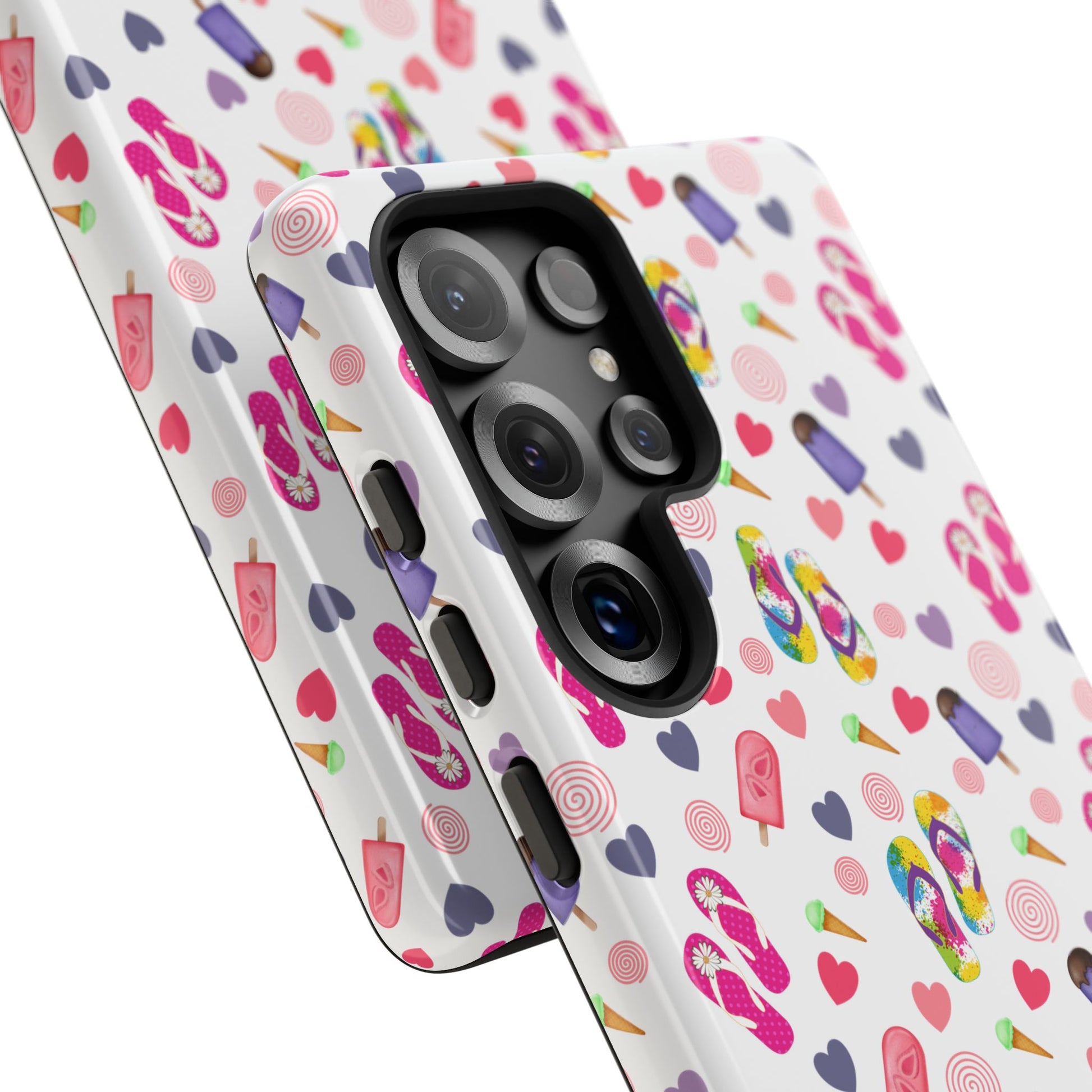 Stay connected to summer vibes with this flip flop design phone case. Perfect for those who love summer and want to add a touch of whimsy to their phone accessories. Ideal for adults who want durable and impact-resistant protection for their phones. Relevant for summer holidays, beach trips, and casual outings.