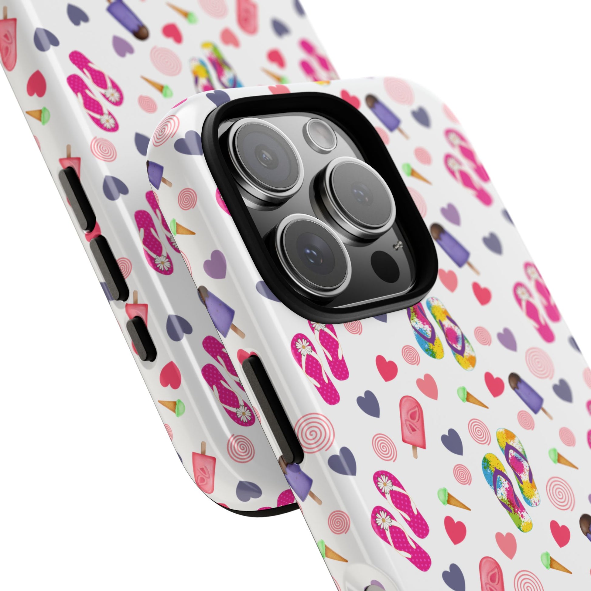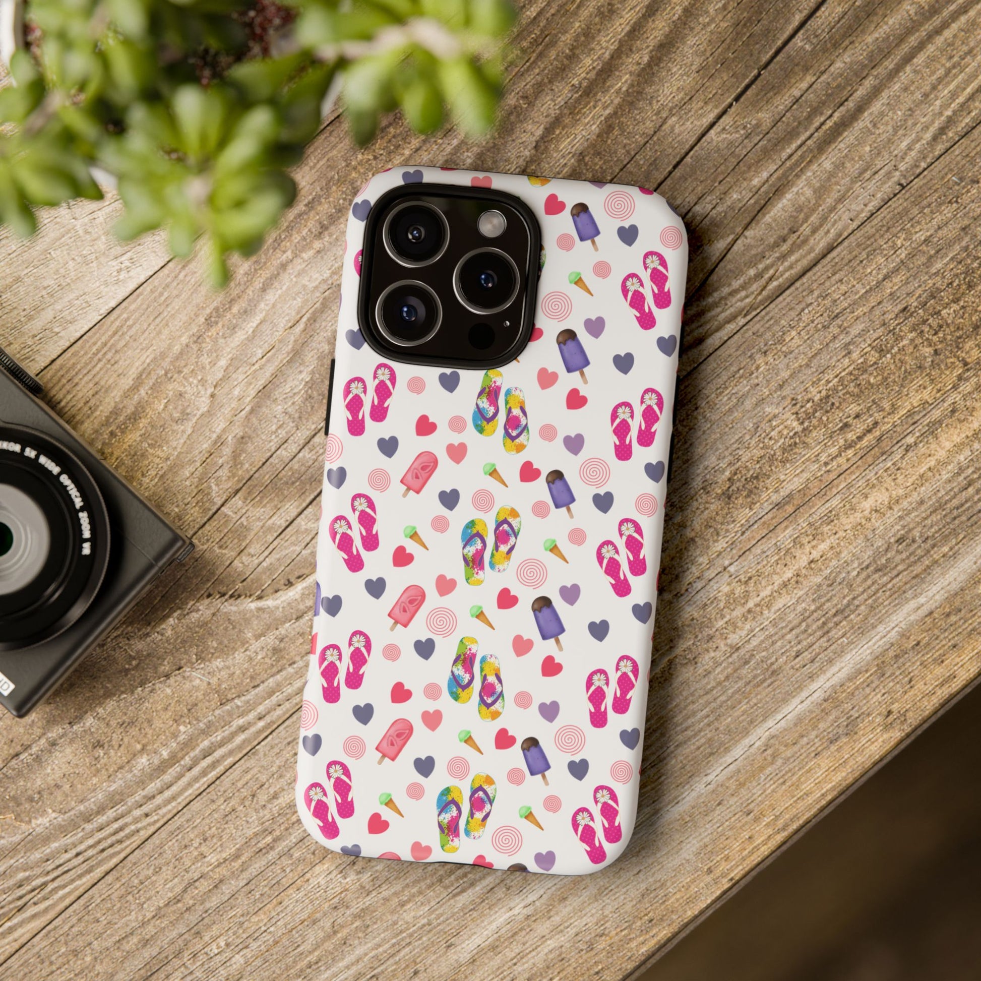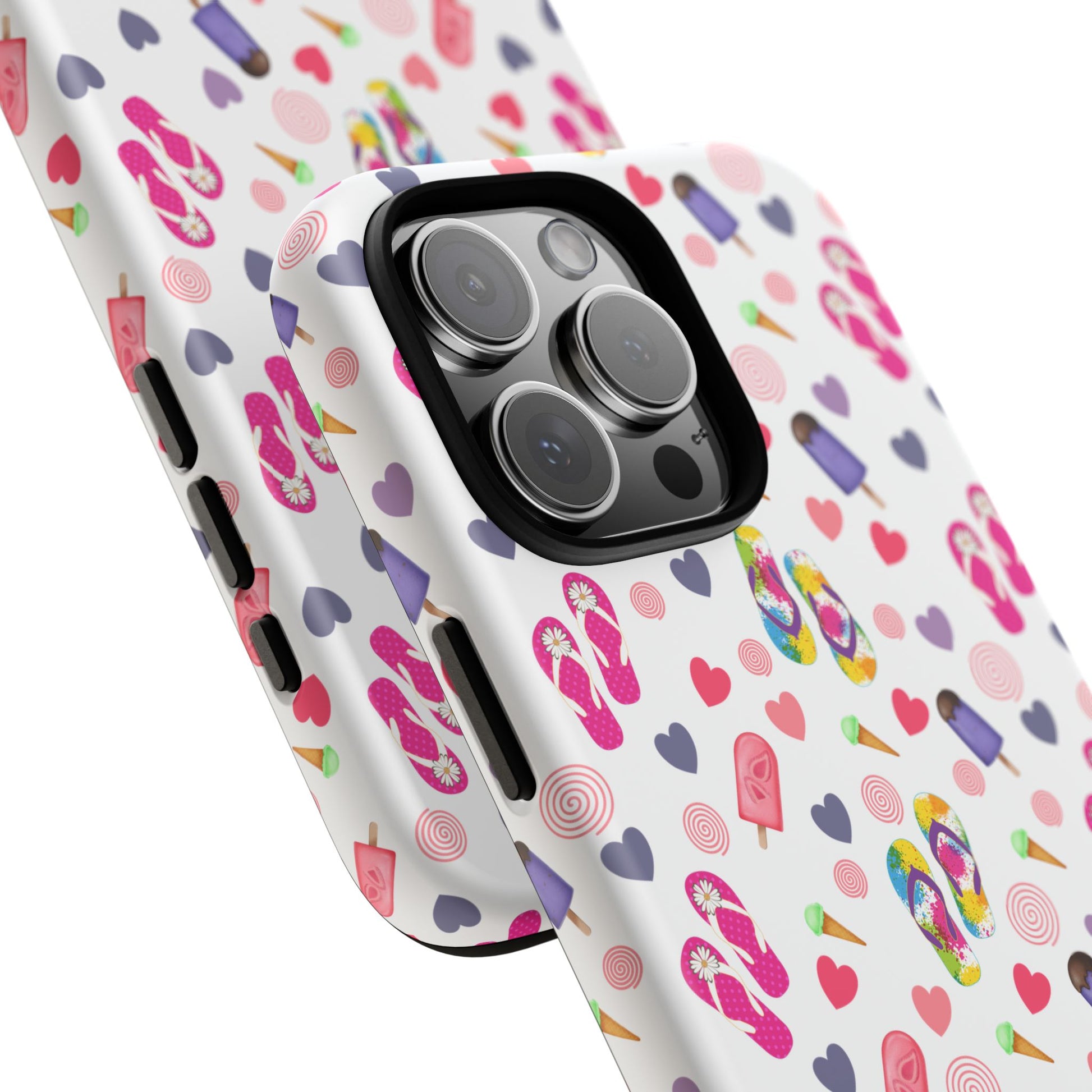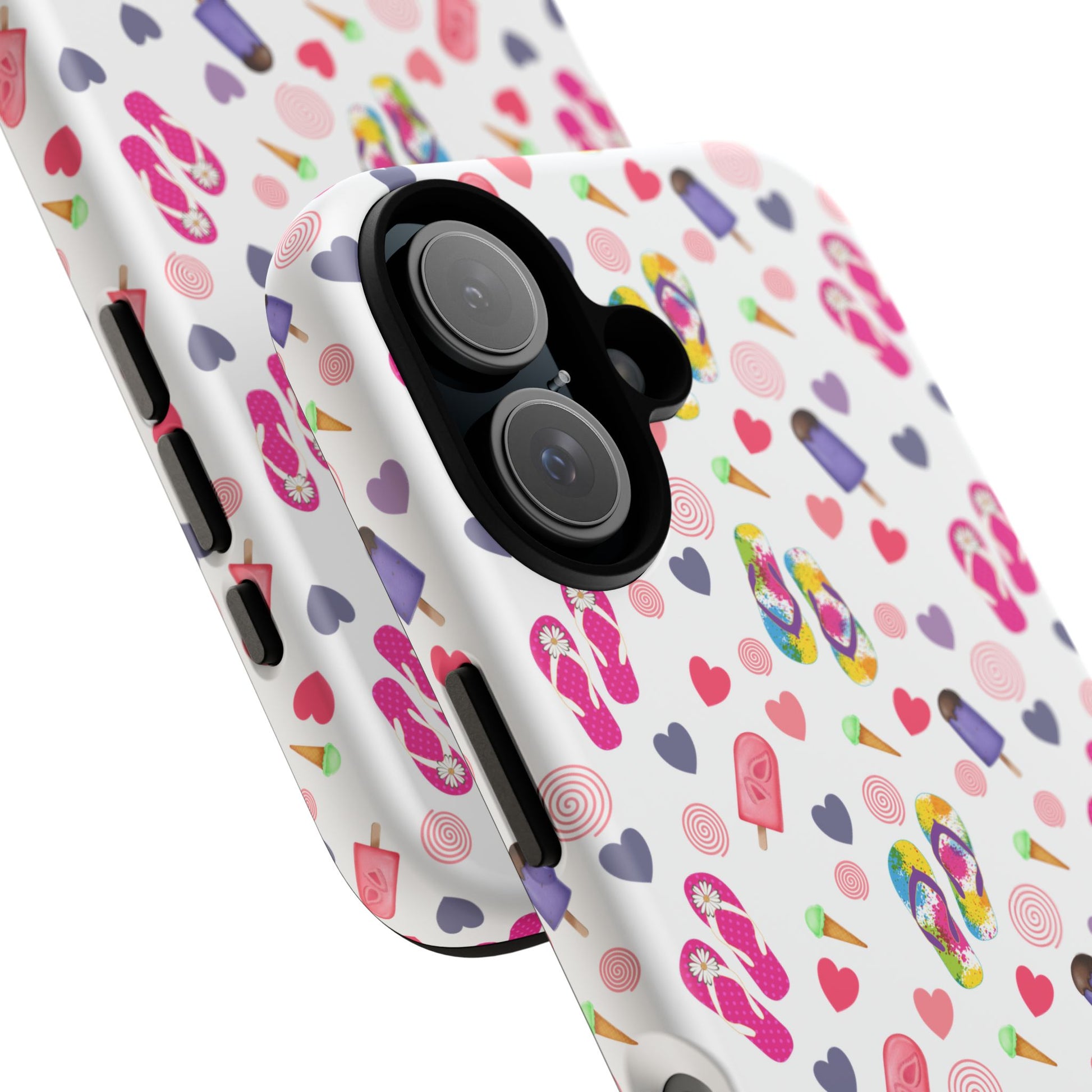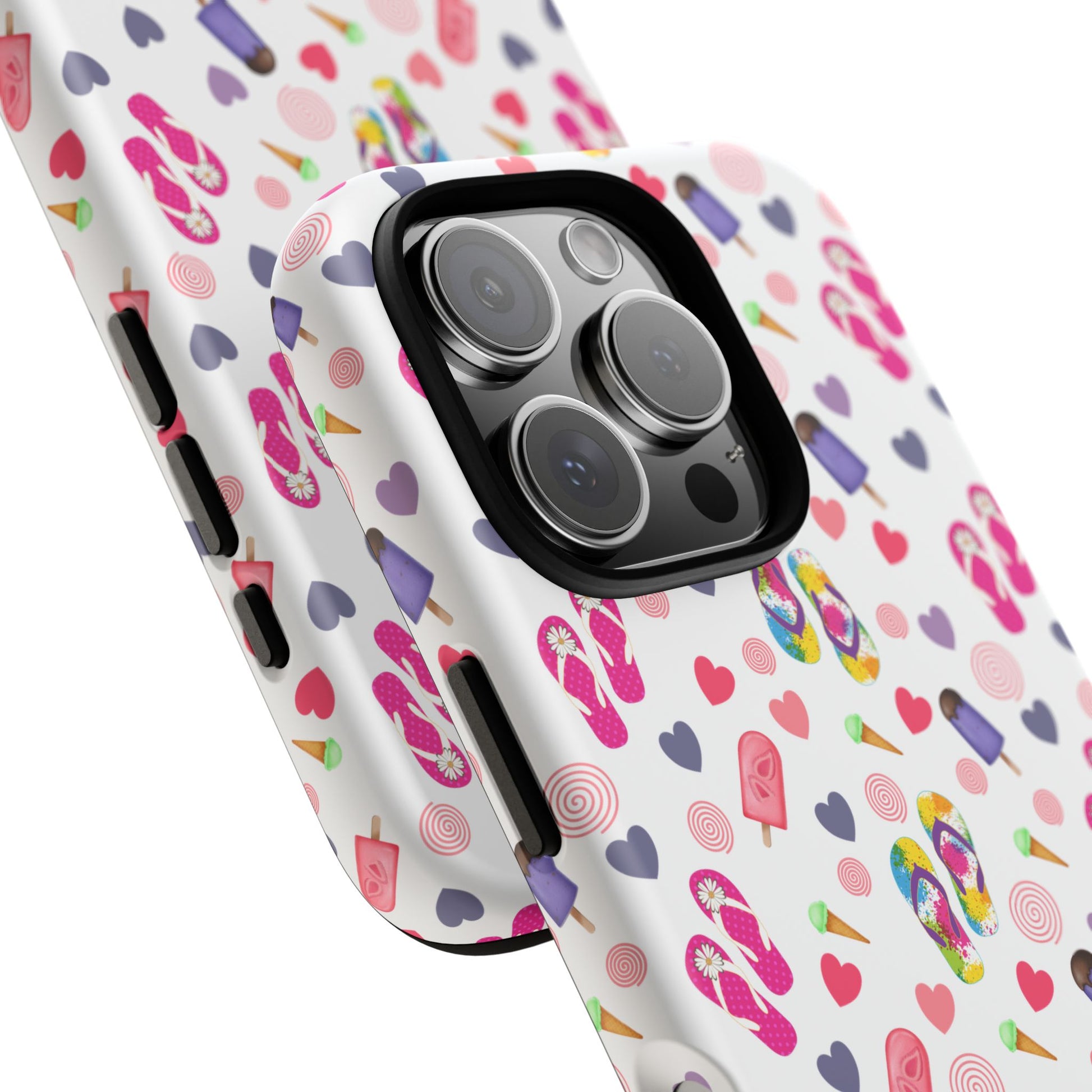 Stay connected to summer vibes with this flip flop design phone case. Perfect for those who love summer and want to add a touch of whimsy to their phone accessories. Ideal for adults who want durable and impact-resistant protection for their phones. Relevant for summer holidays, beach trips, and casual outings.