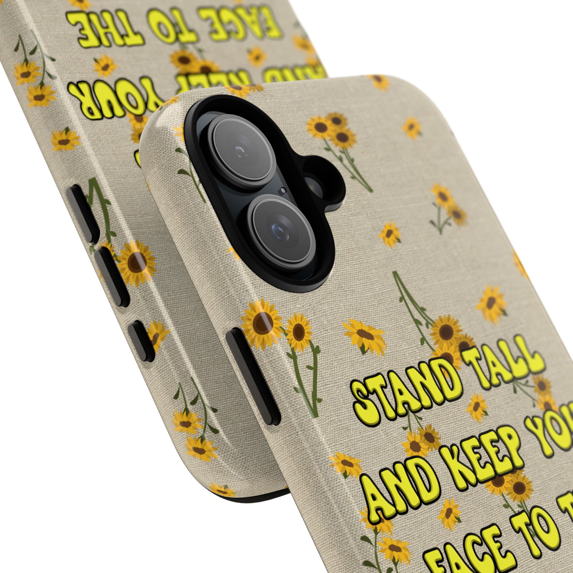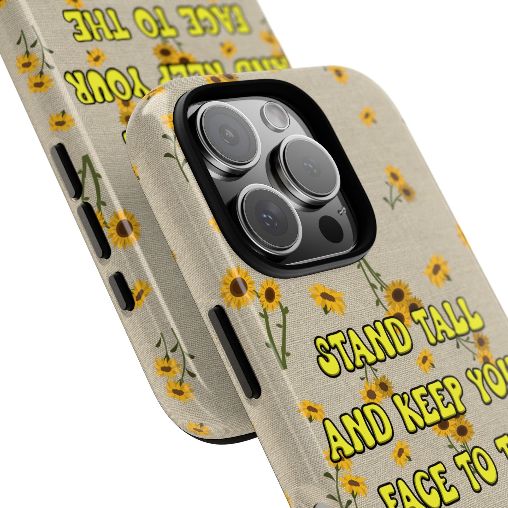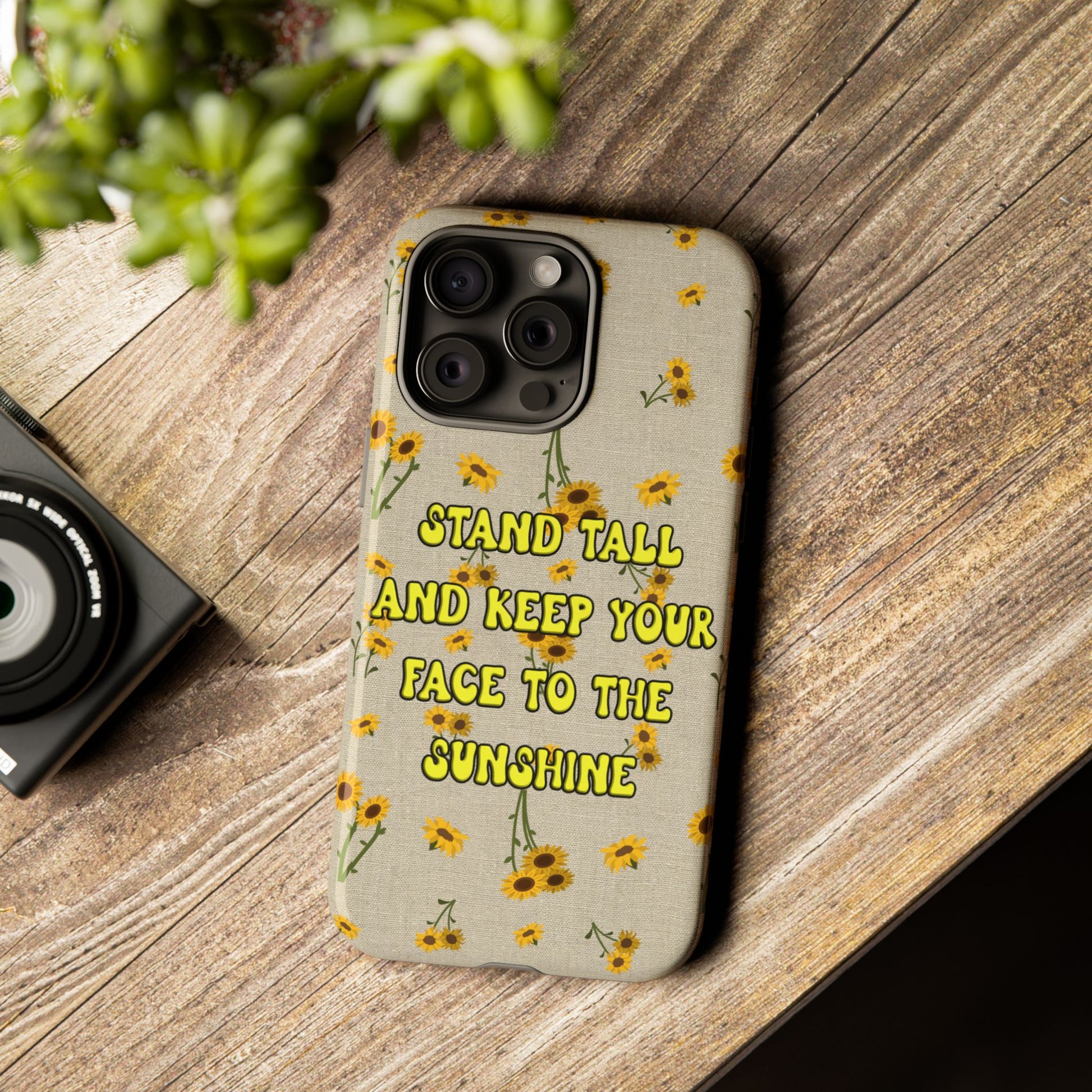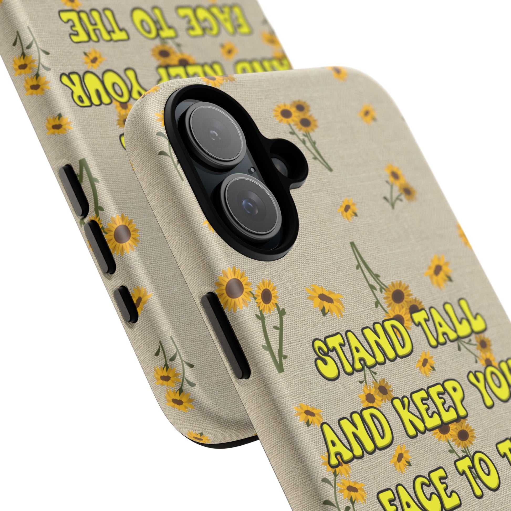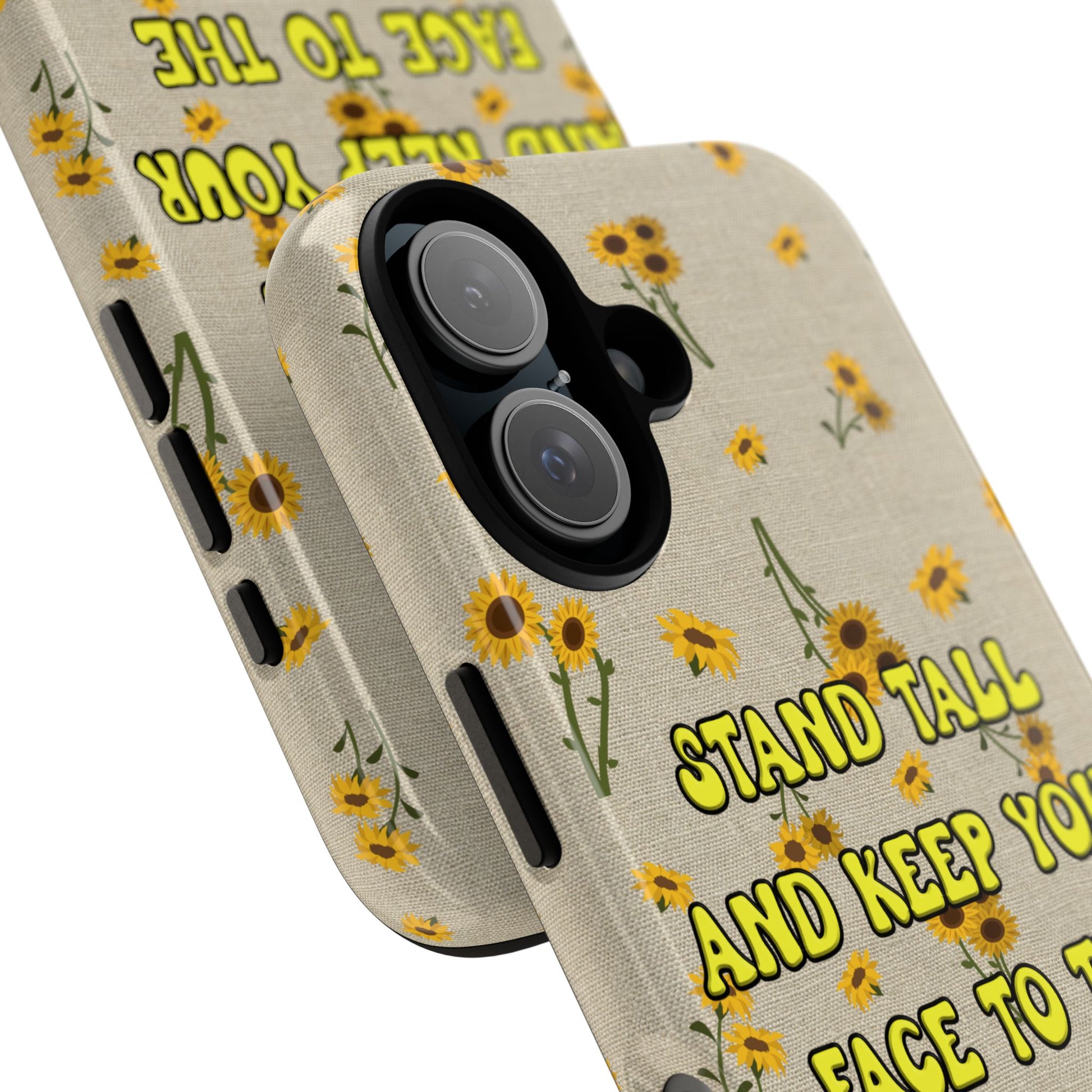 Protect your phone in style with this tough phone case featuring a design of your face to the sun. The durable and impact-resistant materials with shock absorption provide excellent protection against drops and tears. Perfect for adults looking for a unique and sturdy phone case.