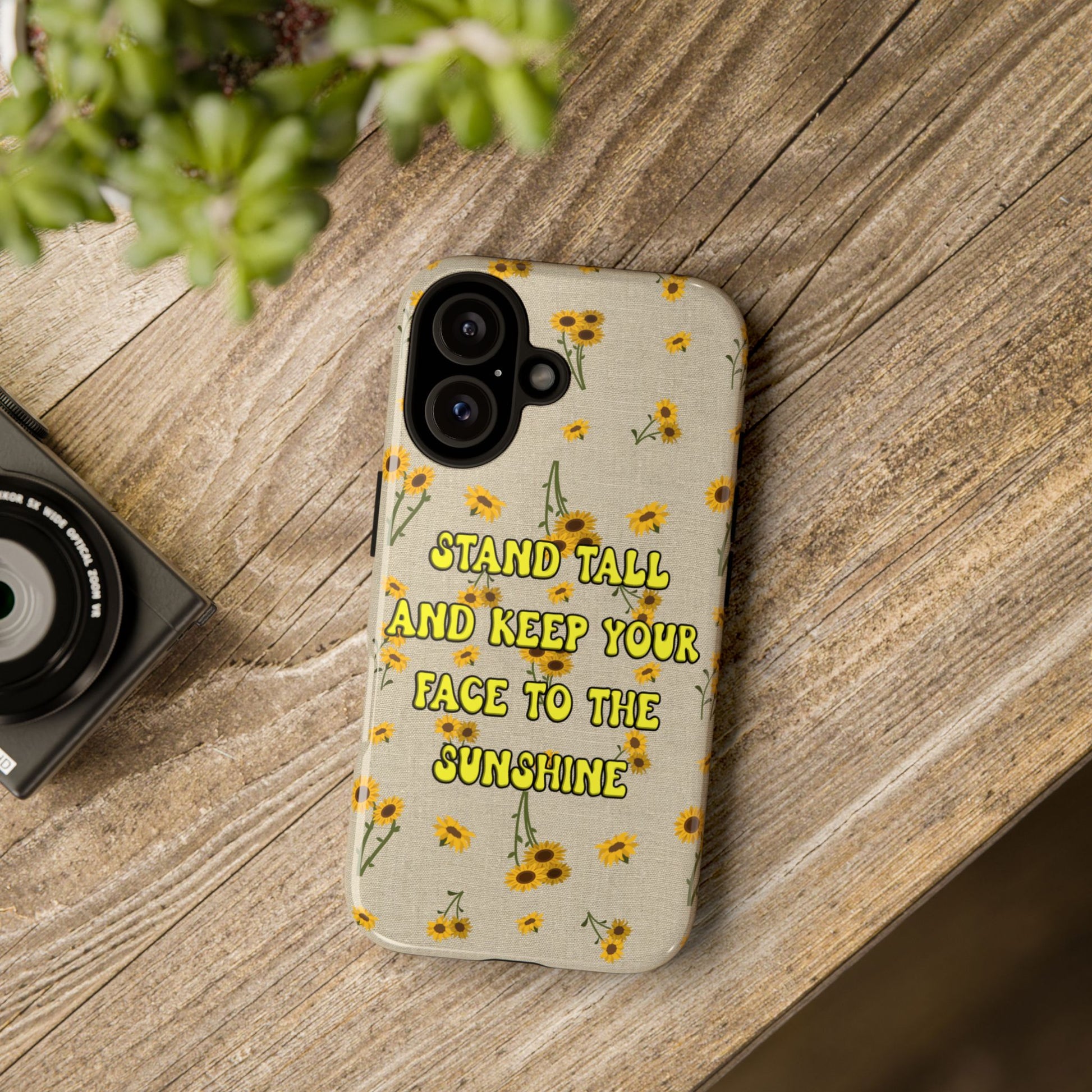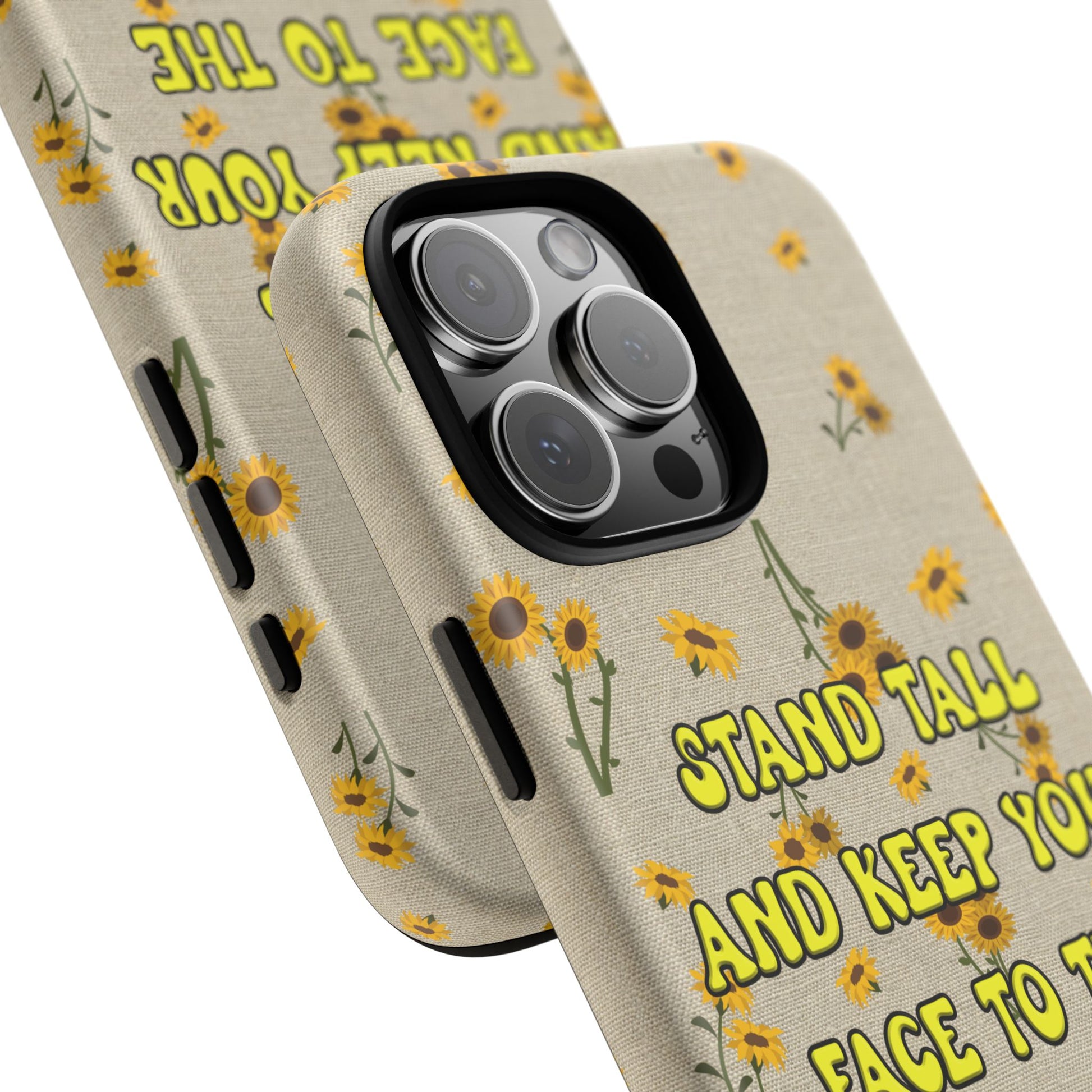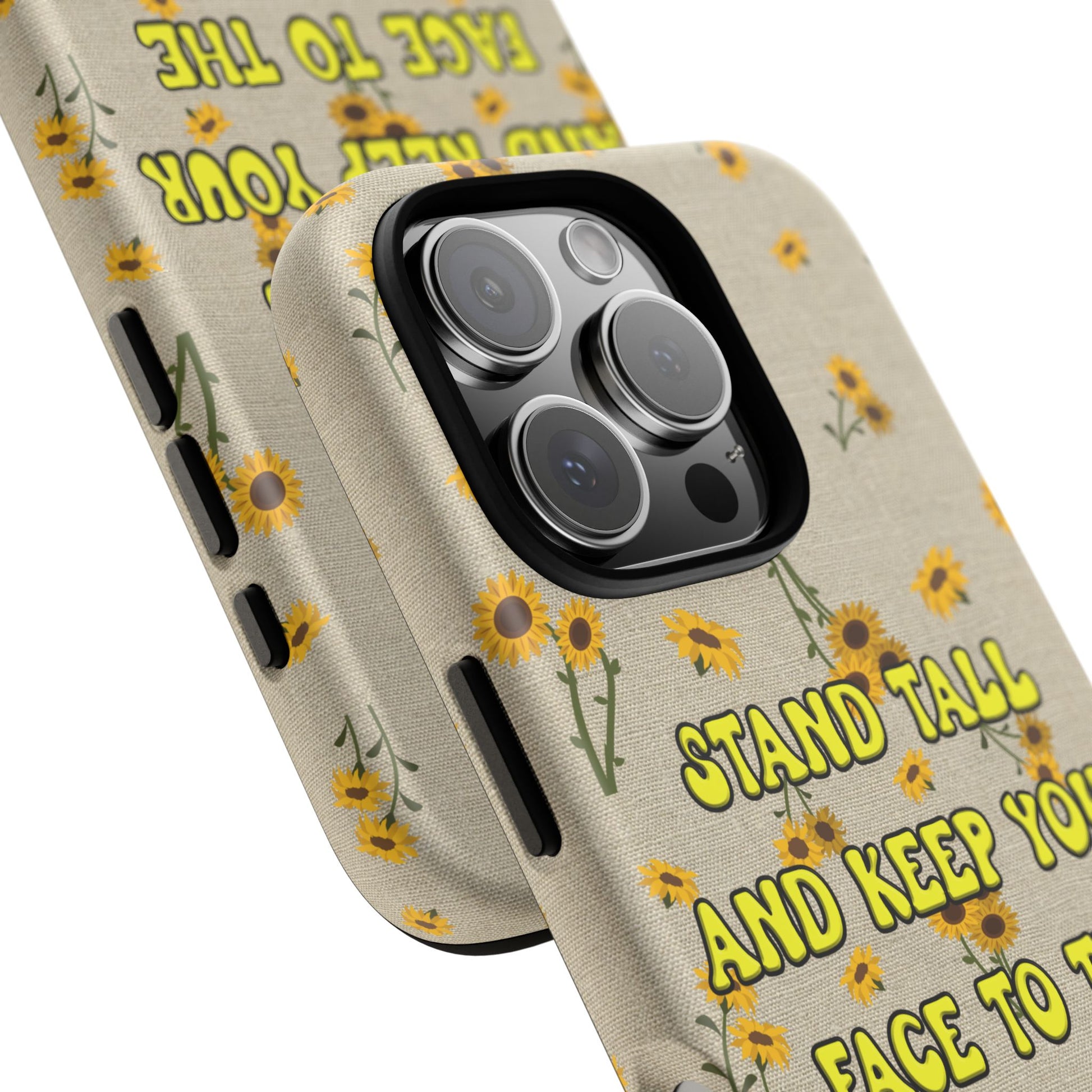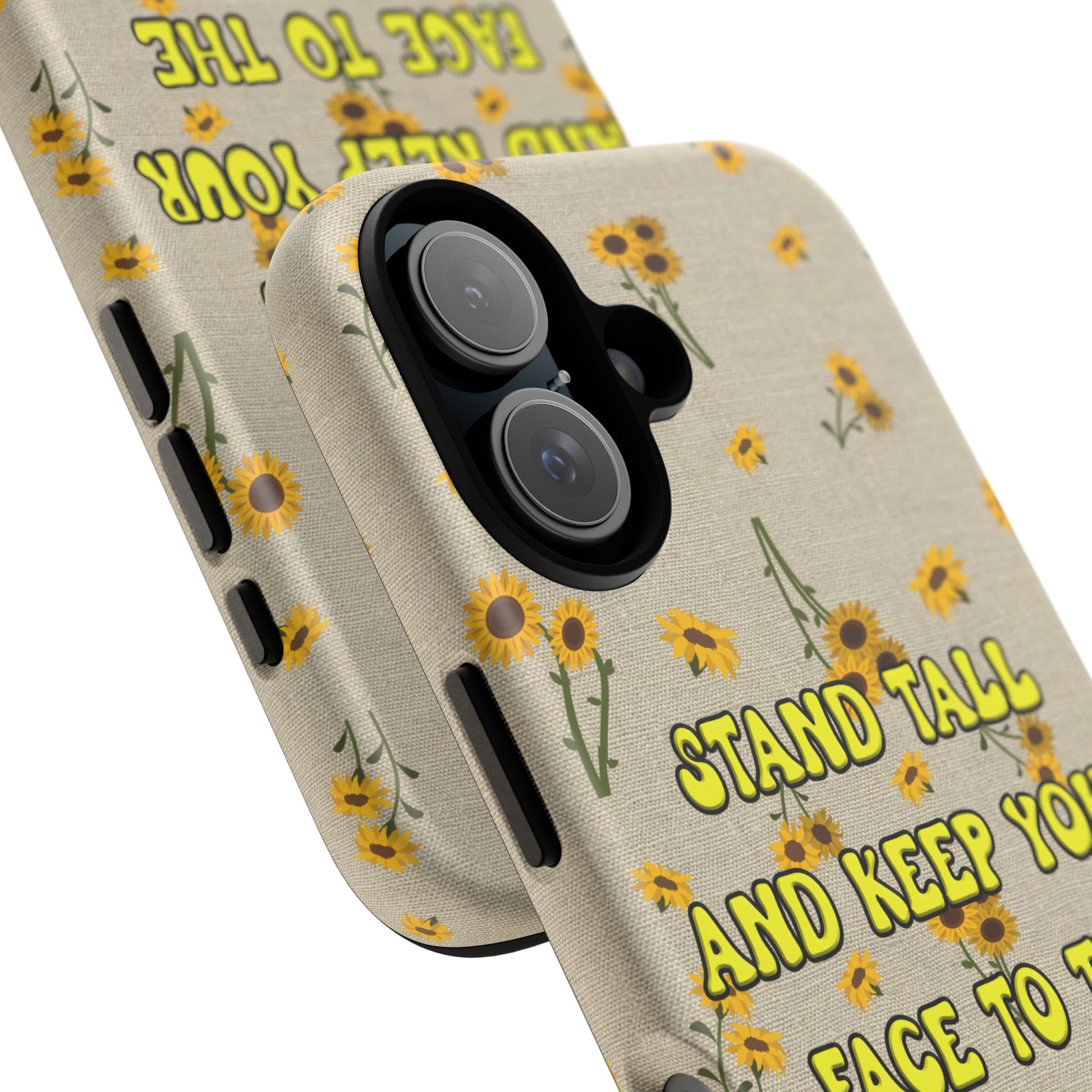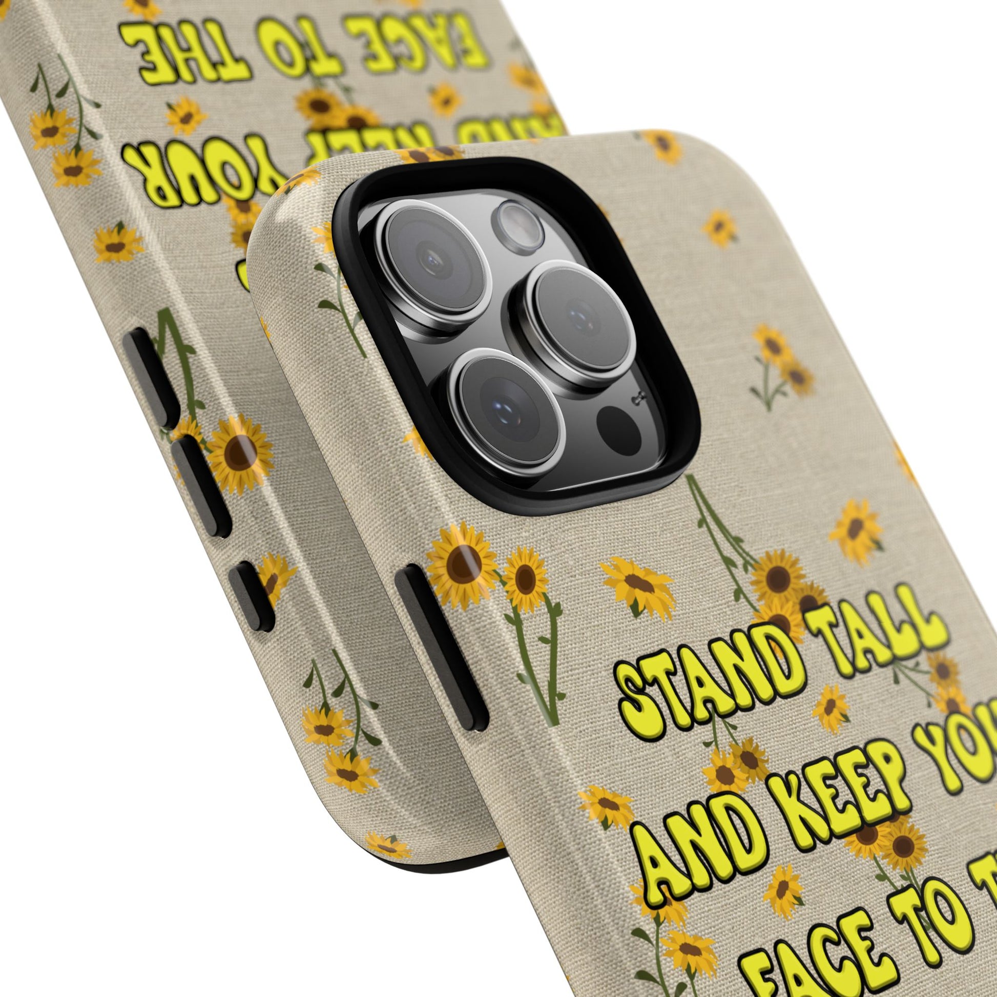 Protect your phone in style with this tough phone case featuring a design of your face to the sun. The durable and impact-resistant materials with shock absorption provide excellent protection against drops and tears. Perfect for adults looking for a unique and sturdy phone case.