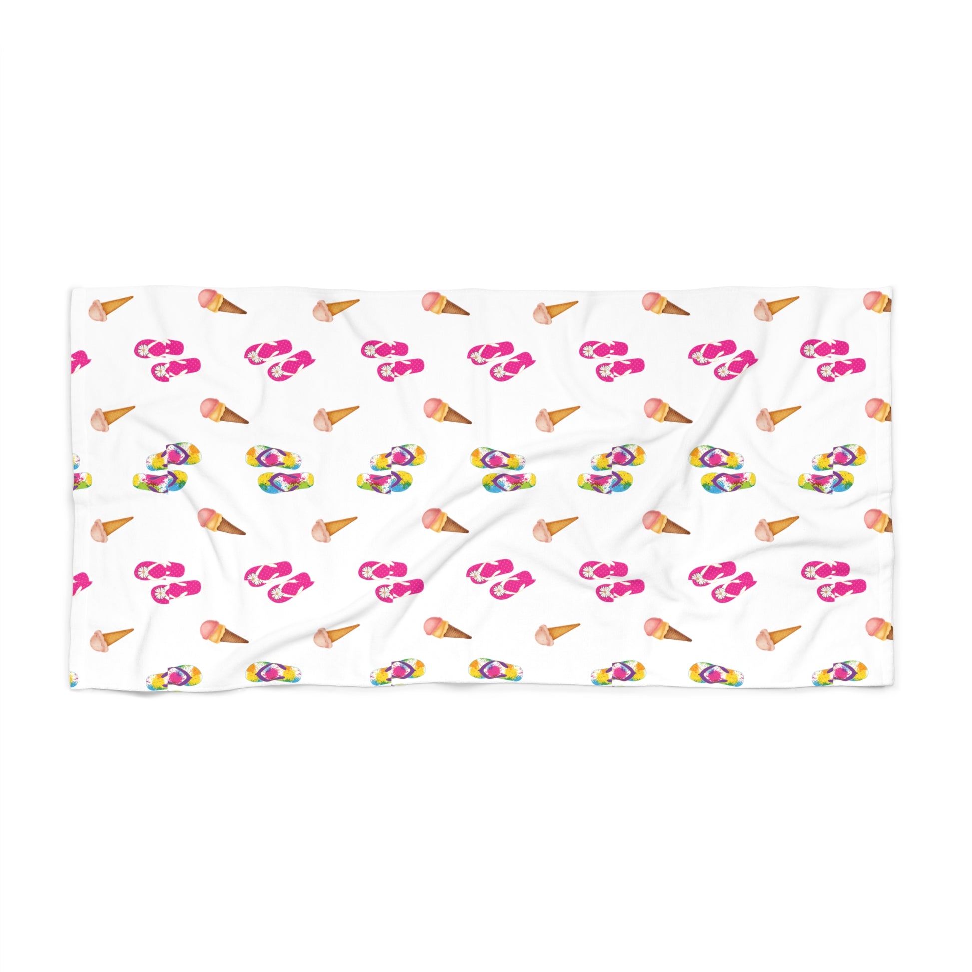 Summer Vibe Beach Towel with Flip Flops & Ice Cream Pattern