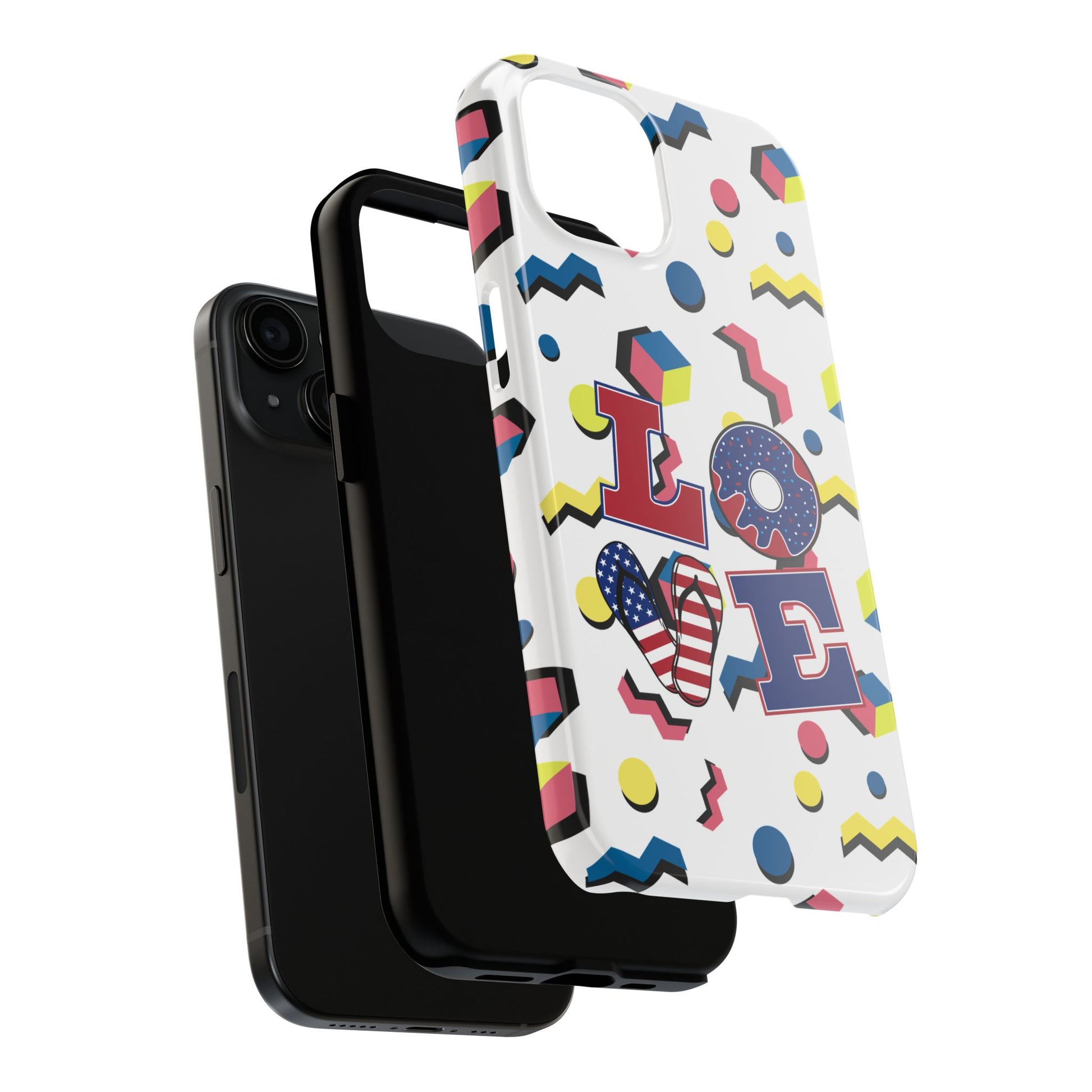 This phone case features a love American style design, perfect for those who appreciate patriotic themes. The tough and durable Lexan plastic material ensures excellent impact resistance, while the flexible rubber liner absorbs shock. With a glossy finish and UV protection, this phone case is not only stylish but also protective. Ideal for iPhone users looking for a durable and patriotic accessory.